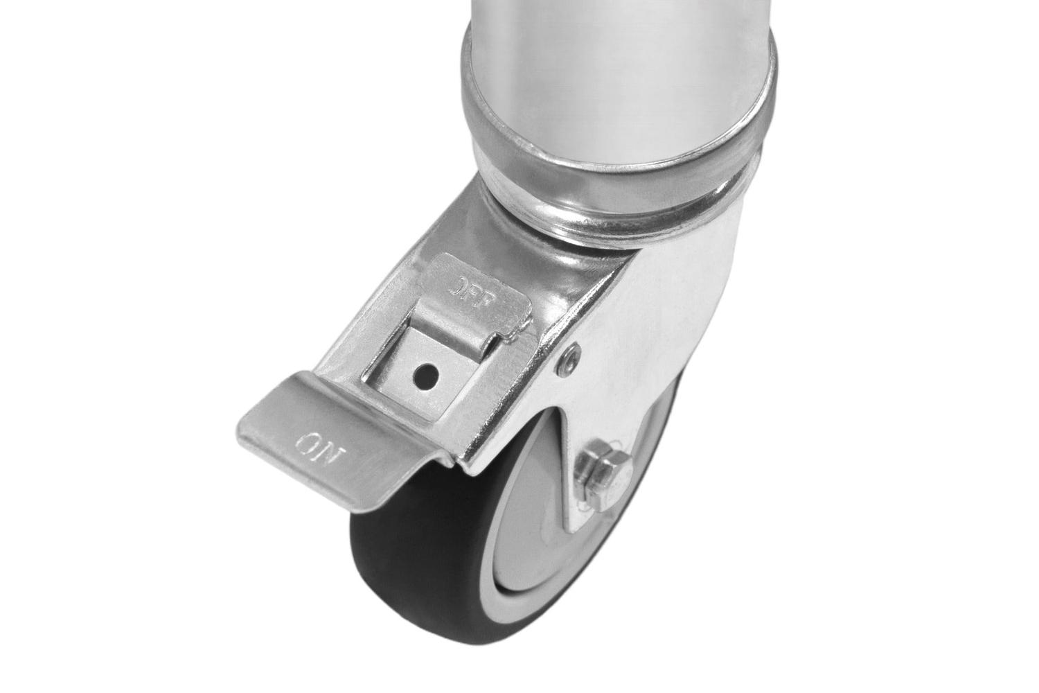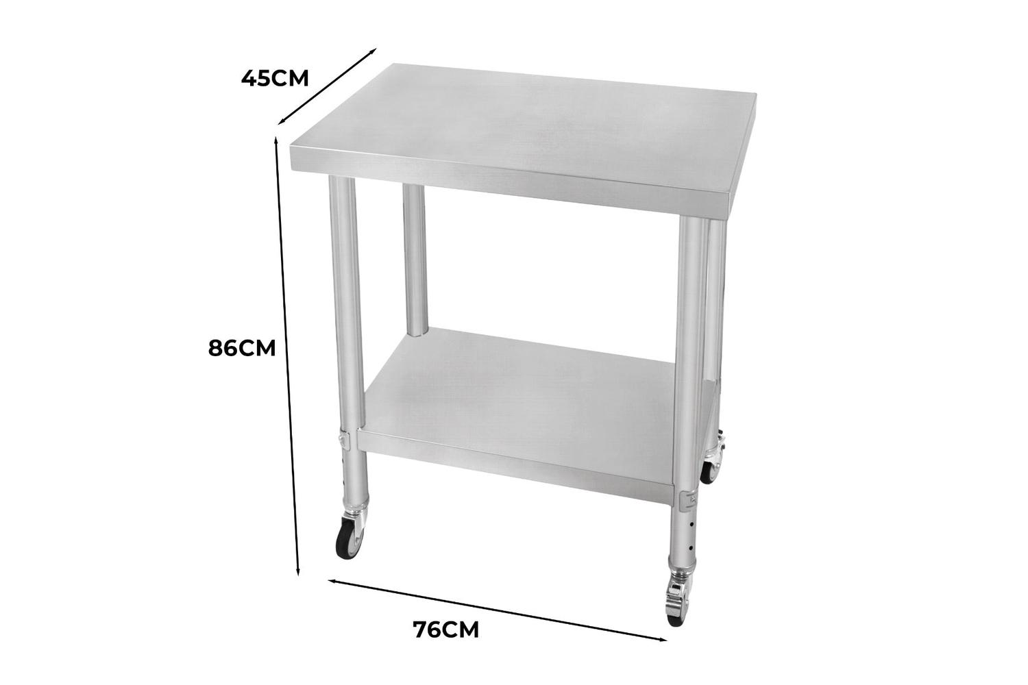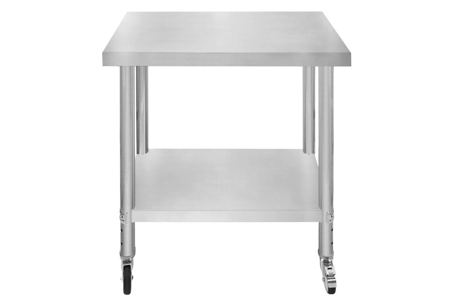 Thanks to the inclusion of an advantageous undershelf, storage is thoughtful and space-saving. It securely accommodates your culinary supplies, equipment, or small appliances offering you easy access. Further enhancing its versatility are the four caster wheels which grant smooth manoeuvrability around the workspace. Two of these wheels have brakes to ensure a stable, secure surface when the table is stationary.