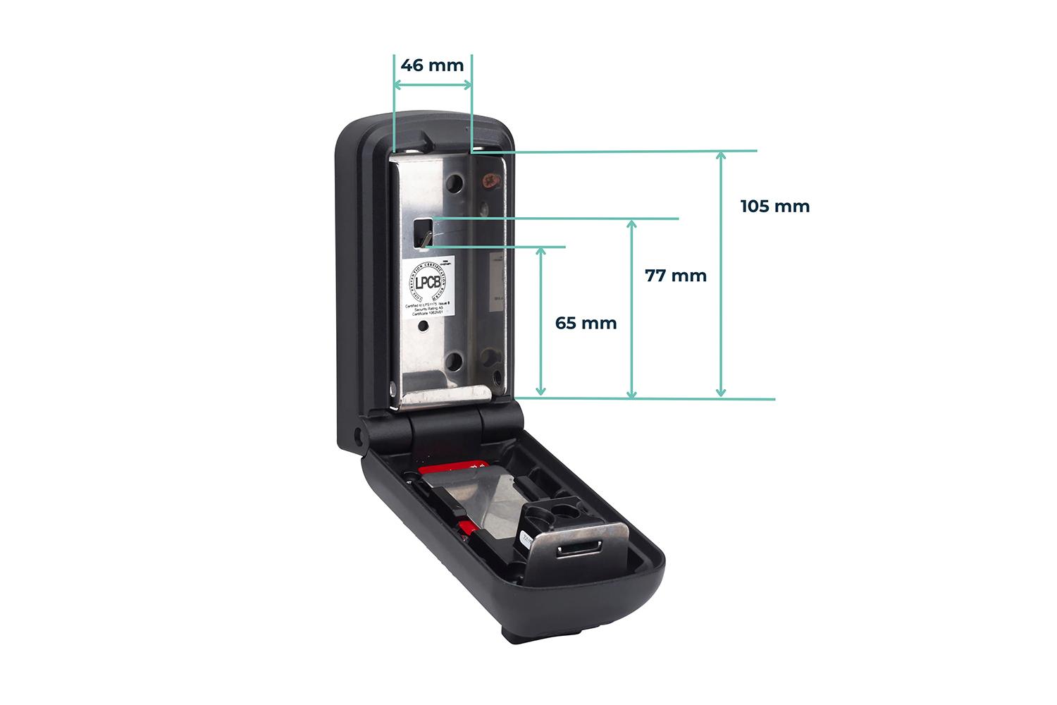 The KEYSAFE Supra P500 Pro Key Box safeguards your keys with unmatched security, an excellence mirrored in a prodigious external size: 149 x 81 x 63 mm, an internal capacity reading: 81 x 51 x 23 mm and a respectable weight accounting to 2.0 kg. Coupled with a generous 5-year warranty, ensure your secured peace of mind is cased with supreme security apparatus and choose this Pro Key box from KEYSAFE store.
