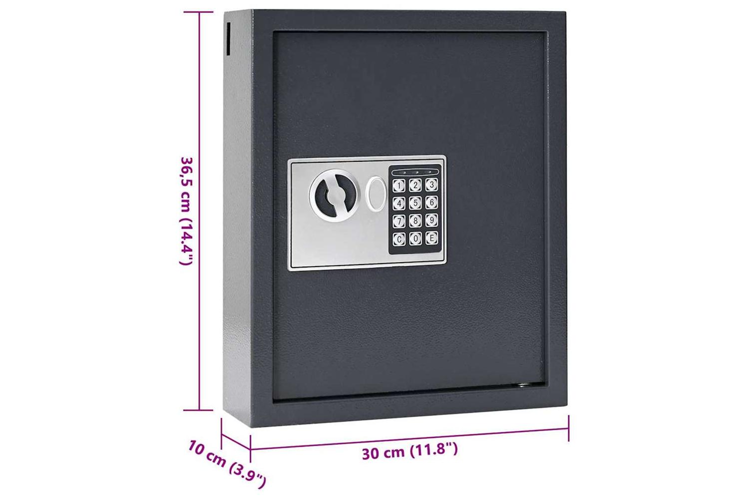 - Compact Size With measurements of 30 x 10 x 36.5 cm, this safe is designed to maximize storage inside while keeping its footprint small. Its rectangular shape is easy to tuck away in cramped spots like small offices, all while keeping your valuables secure.