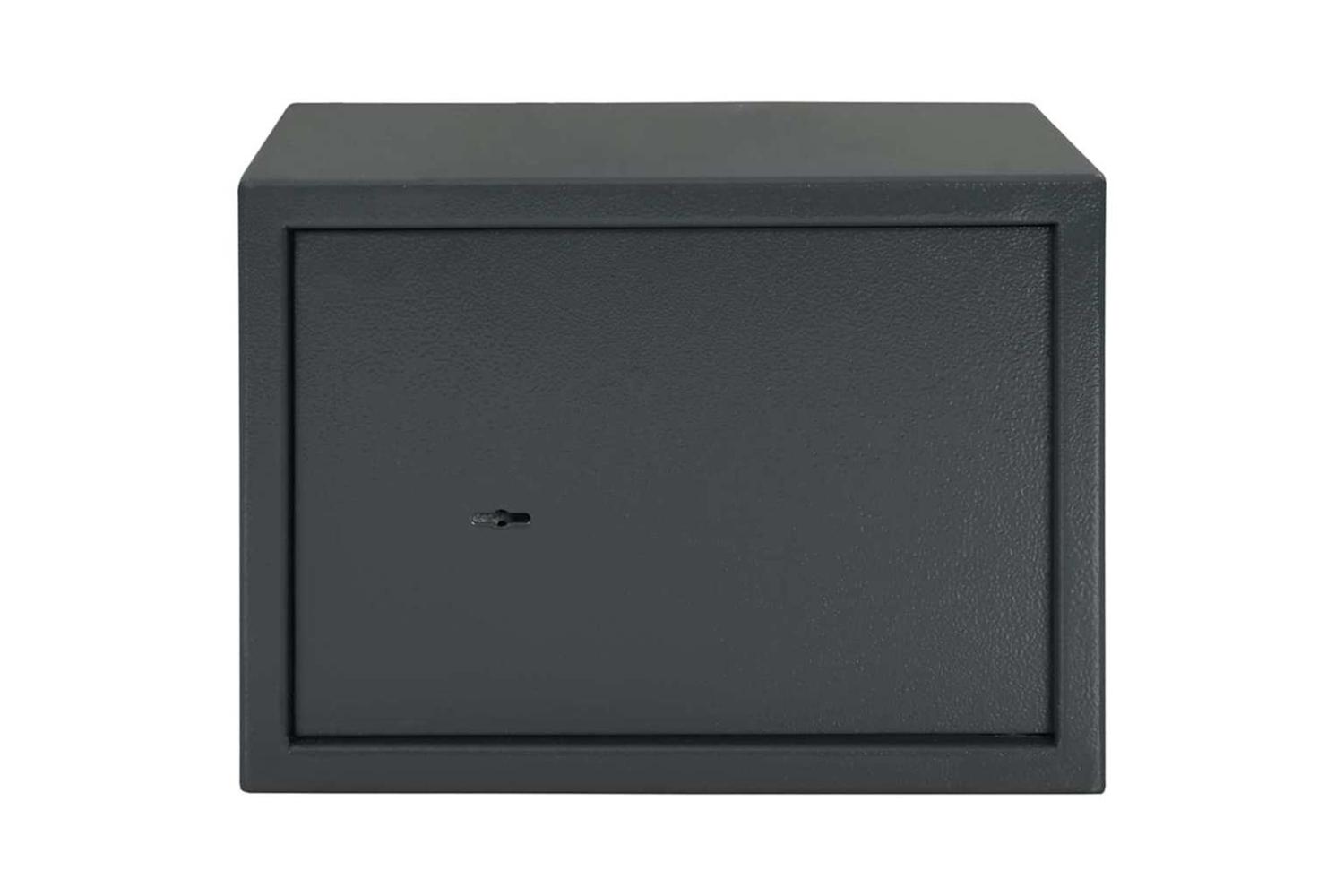 - Modern Style Defined by simplicity and sleekness, this safe box features a minimalist design with a solid grey finish, harmonizing effortlessly with modern office decor. Emphasizing both style and function, it is as much an aesthetic piece as a practical security necessity, serving its purpose with understated grace.