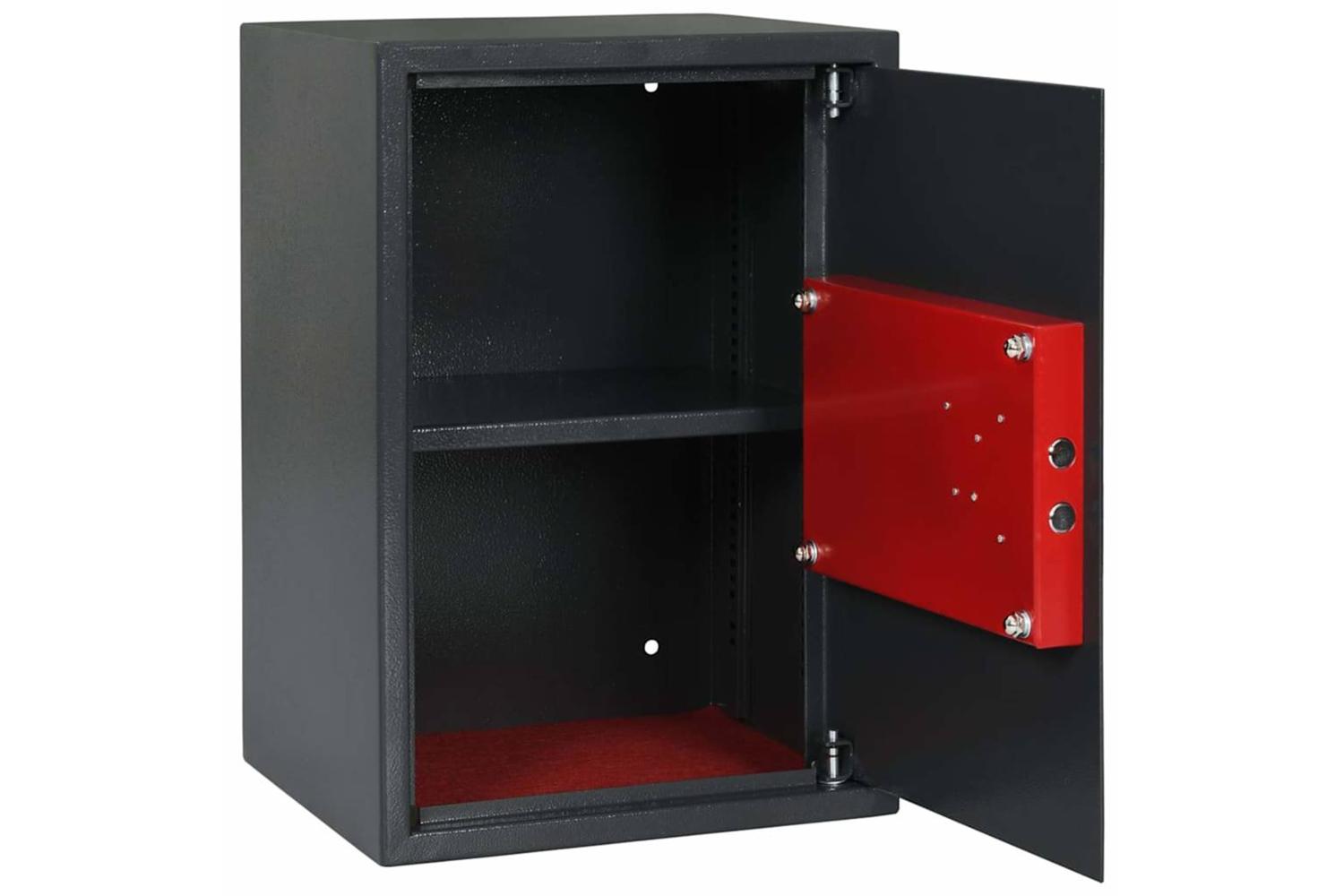 - Inclusive Complements This safe box comes with essential components for optimal use —two keys for manual access and four fixing bolts to ensure a secure installation. Also included is a plush grey carpet lining to protect the valuables within, effectively preventing scratches or damage to delicate items.
