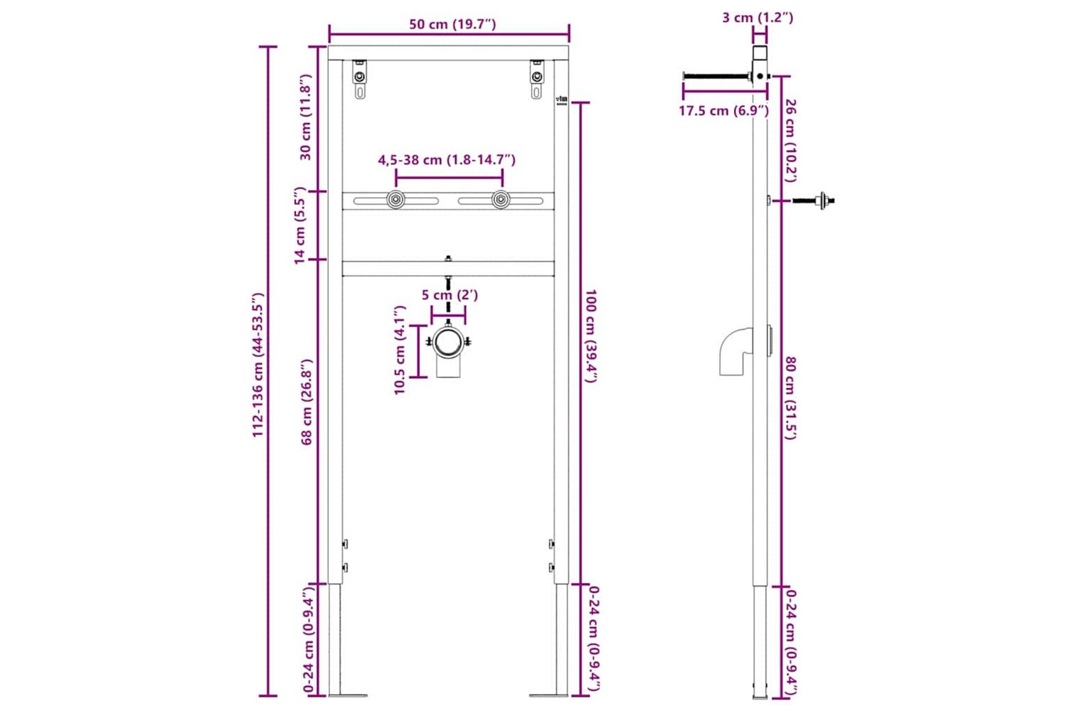 - Overall dimensions: 50 x 17.5 x 136 cm (W x L x H)