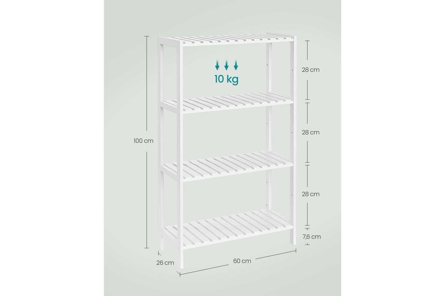 - Each shelf supports up to 10 kg, ideal for towels, toiletries, and more