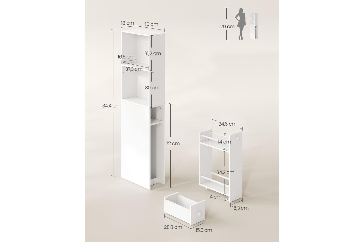 Standing at 134.4 cm tall, this storage unit provides multiple shelves and compartments to neatly organise toiletries, towels, cleaning supplies, and more. The vertical design maximises floor space, making it perfect for smaller bathrooms where every inch counts. The sturdy construction and anti-tip kit offer added safety, especially in busy family homes. Assembly is straightforward with the included accessory kit and clear instructions, so you can enjoy your new storage solution in no time.