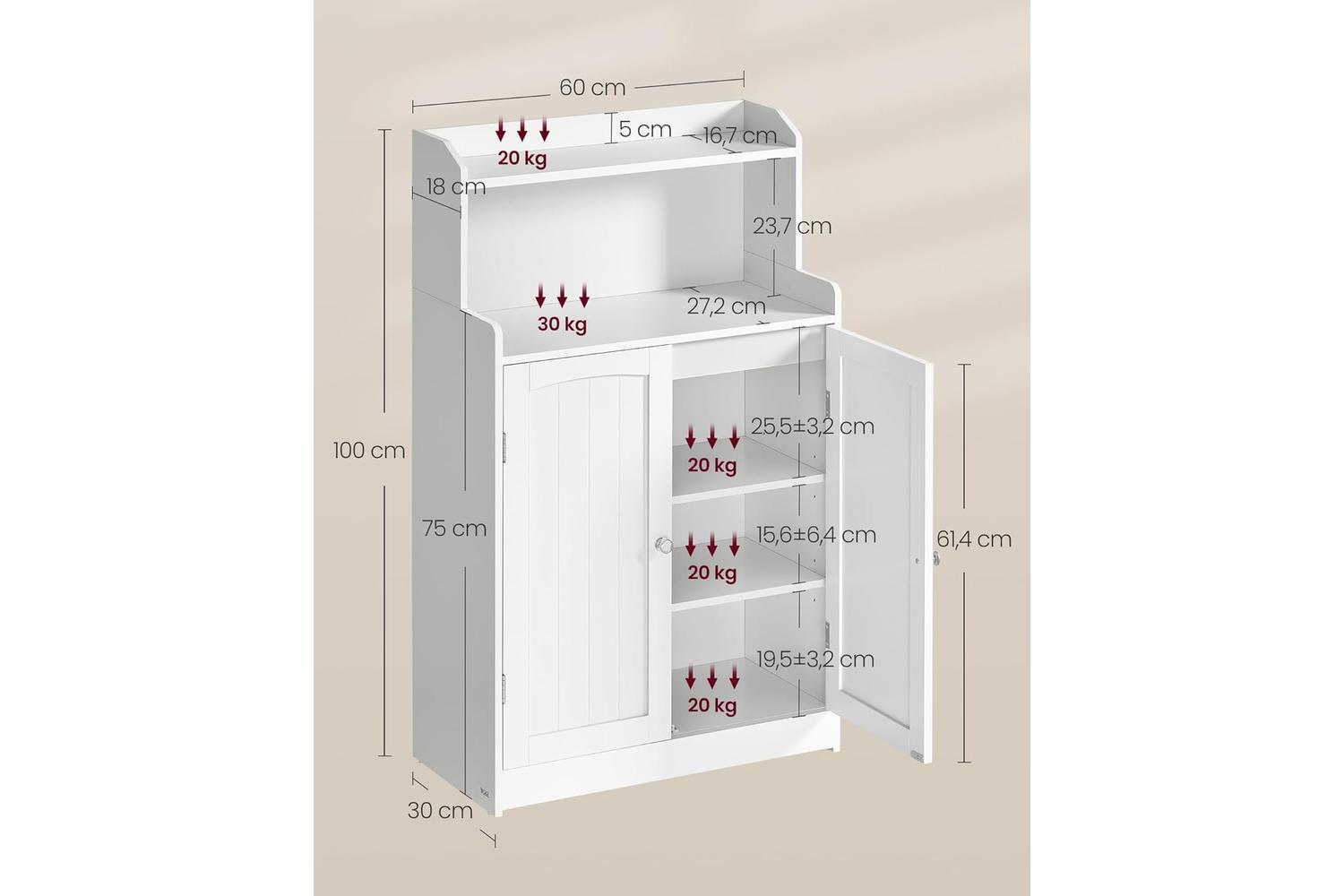 - Spacious design: 30 x 60 x 100 cm (Depth x Width x Height)
