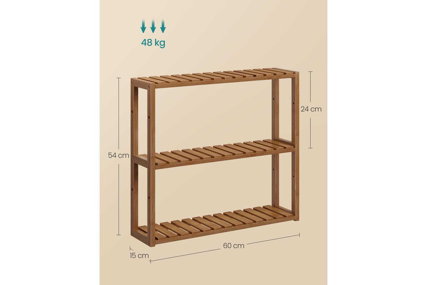 Caramel Brown Three Layer Bathroom Bamboo Storage Rack | Bathroom Storage | Bamboo | 60x15cm