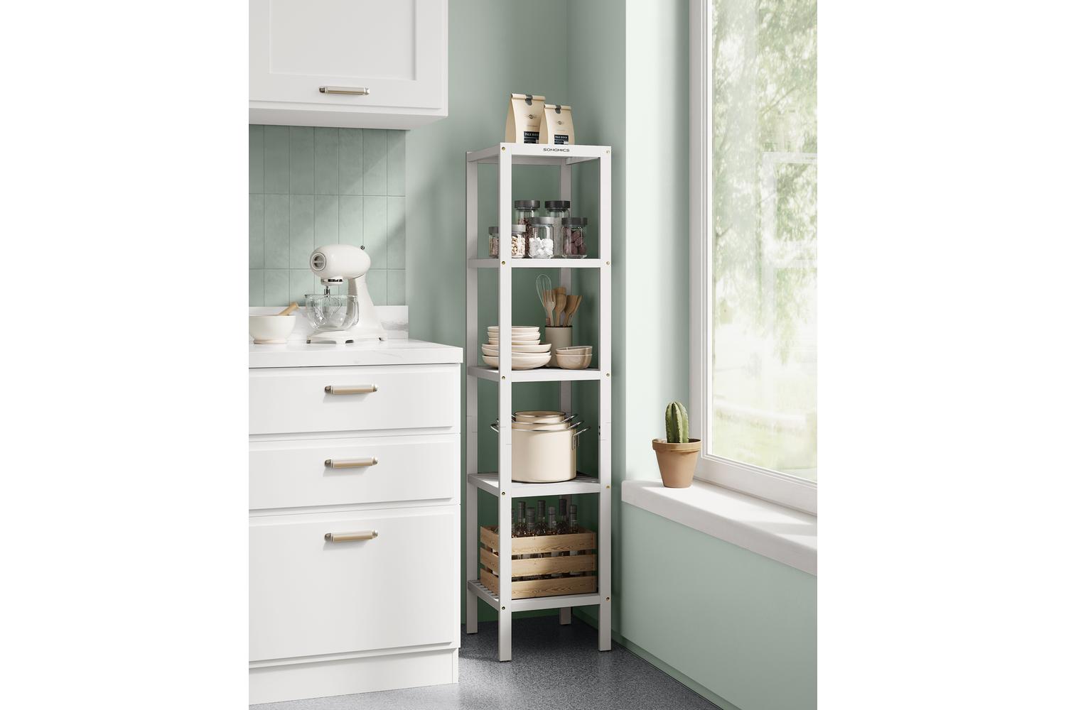 Upgrade your home organisation with the Five-Layer White Bamboo Home Storage Rack from SONGMICS. Designed for Irish homes where space is precious, this elegant bamboo rack is the perfect solution for keeping your bathroom, kitchen, or living room tidy and stylish. Crafted from high-quality bamboo, it brings a natural warmth and modern touch to any space, making it a must-have for those who value both function and aesthetics.