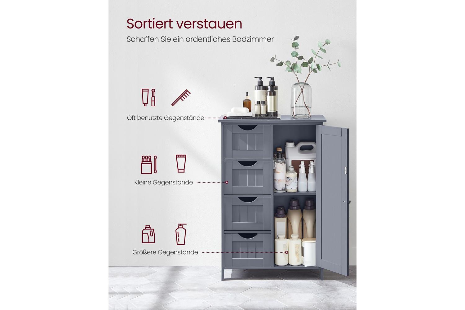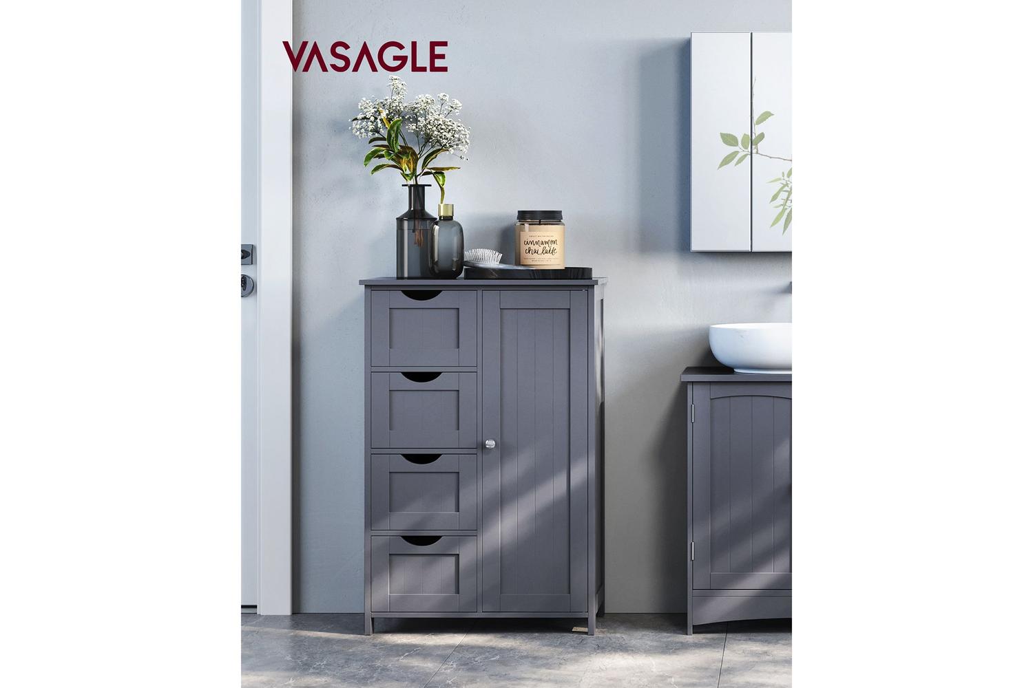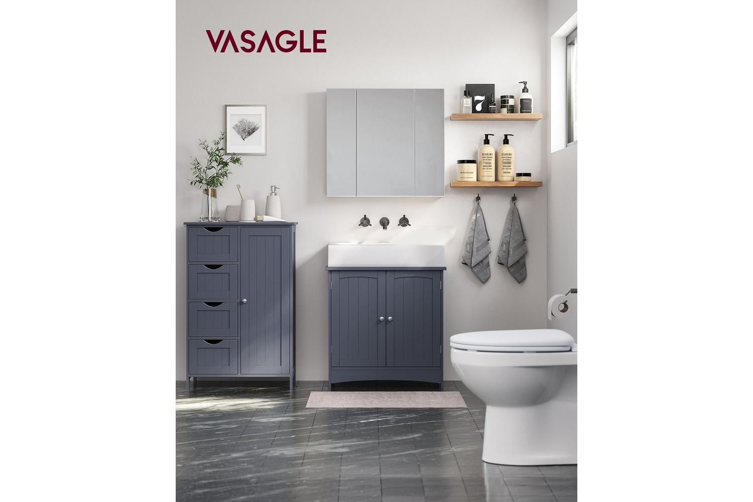 Transform your bathroom with the VASAGLE Side Cabinet, the perfect blend of style, practicality, and durability for Irish homes. Designed to maximise your storage space, this elegant grey cabinet is crafted from high-quality MDF, ensuring a sturdy and long-lasting addition to your bathroom. Whether you are looking to declutter your space or add a touch of modern sophistication, this bathroom storage solution is tailored to meet your needs.