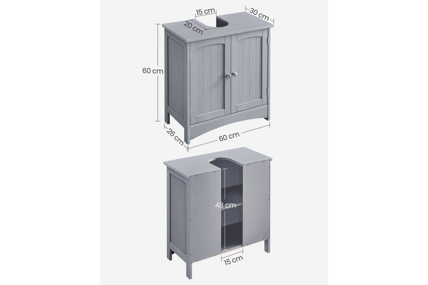 Designed with practicality in mind, the cabinet includes a generous 20 x 15 cm siphon opening, making it compatible with a wide range of sink types commonly found in Irish bathrooms. The closed storage design keeps your bathroom looking tidy and clutter-free, while the neutral finish blends seamlessly with any décor style, from contemporary to classic.