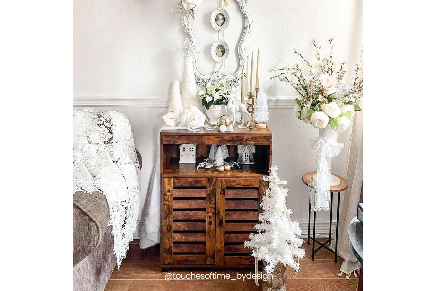 Made from resilient E1-grade engineered wood, this durable floor cabinet provides a stable and robust base for secure storage. It comes with adjustable feet and an anti-tip kit, ensuring peace of mind as your vases and valuables stay tucked inside, without you worrying about shelf tipping incidents.