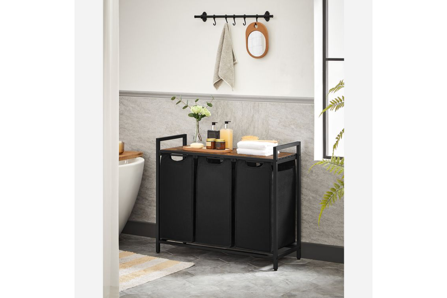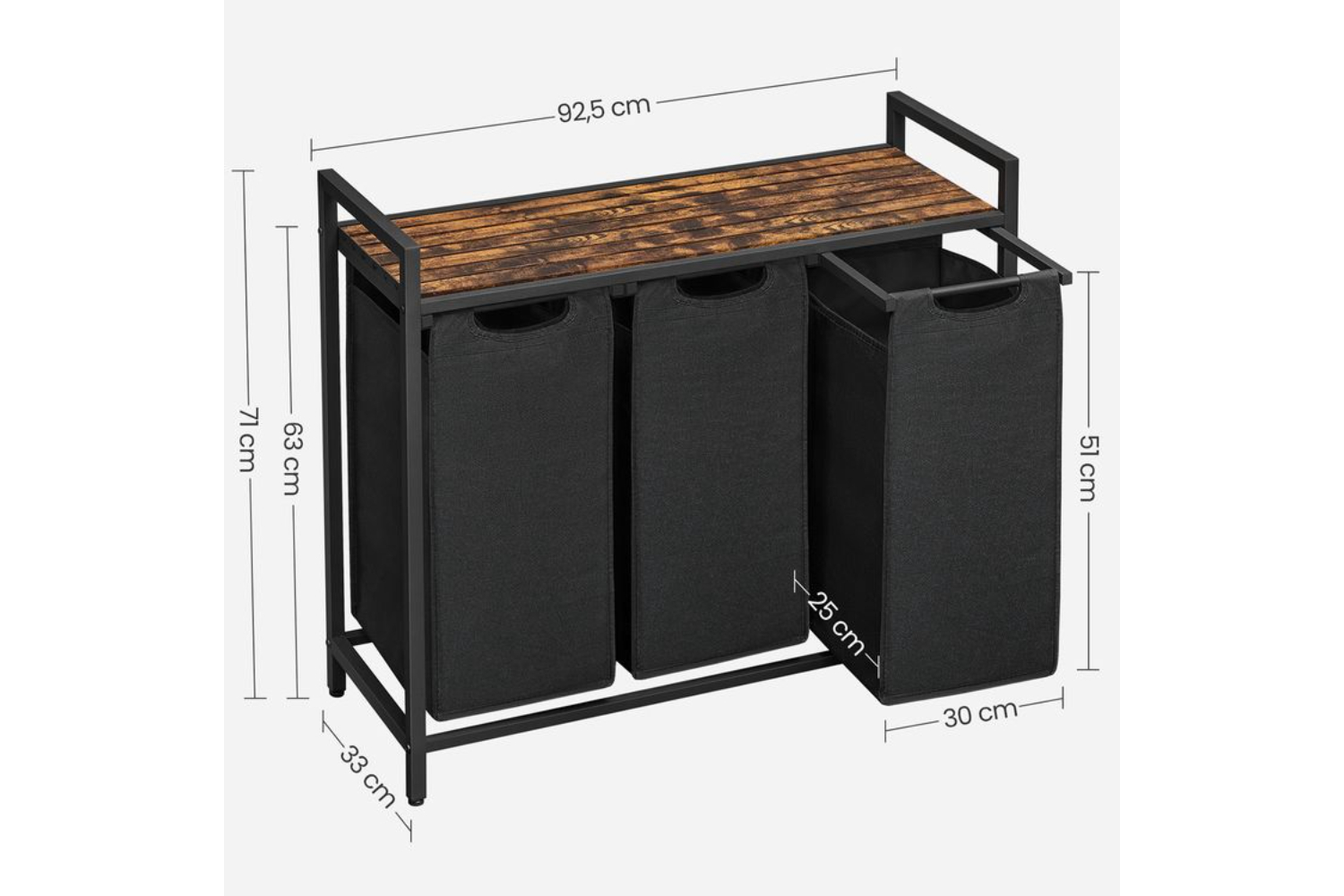 Vasagle Laundry Basket, Laundry Hamper, 3 Detachable Oxford Fabric Bags, Metal Frame, 3 x 38 Liters, 92.5 x 33 x 71 cm, Vintage Brown Black BLH301B01