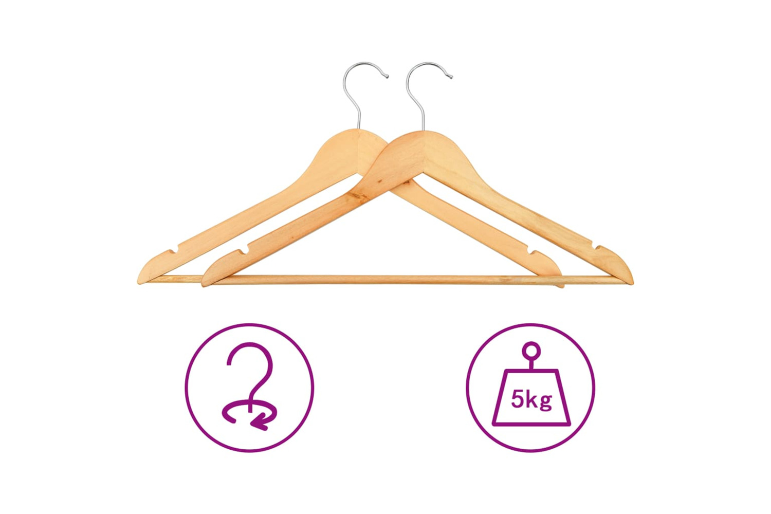 This wooden set of hangers is made of hardwood and metal, keeping it durable and sturdy enough to withstand the weight of heavy. The 360 degrees rotatable hook provides flexibility to organise your clothing in various places. Also, 2 grooves on both sides prevent the clothes or clothing accessories to slide off.