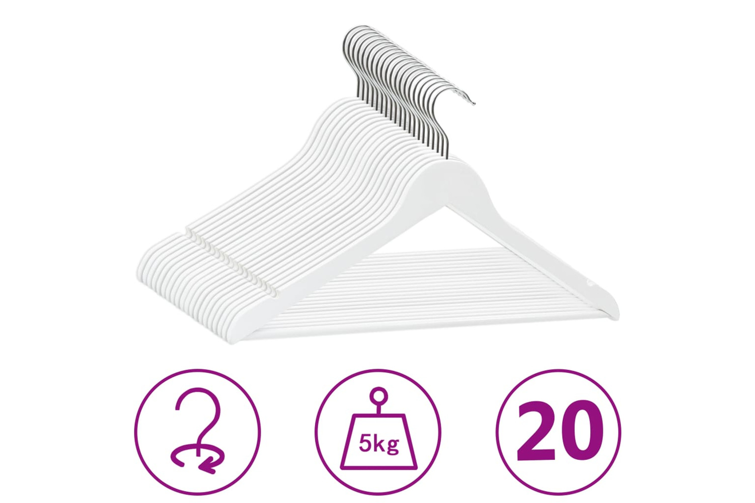 This wooden set of hangers is made of hardwood and metal, keeping it durable and sturdy enough to withstand the weight of heavy. The 360 degrees rotatable hook provides flexibility to organise your clothing in various places. Also, 2 grooves on both sides prevent the clothes or clothing accessories to slide off.