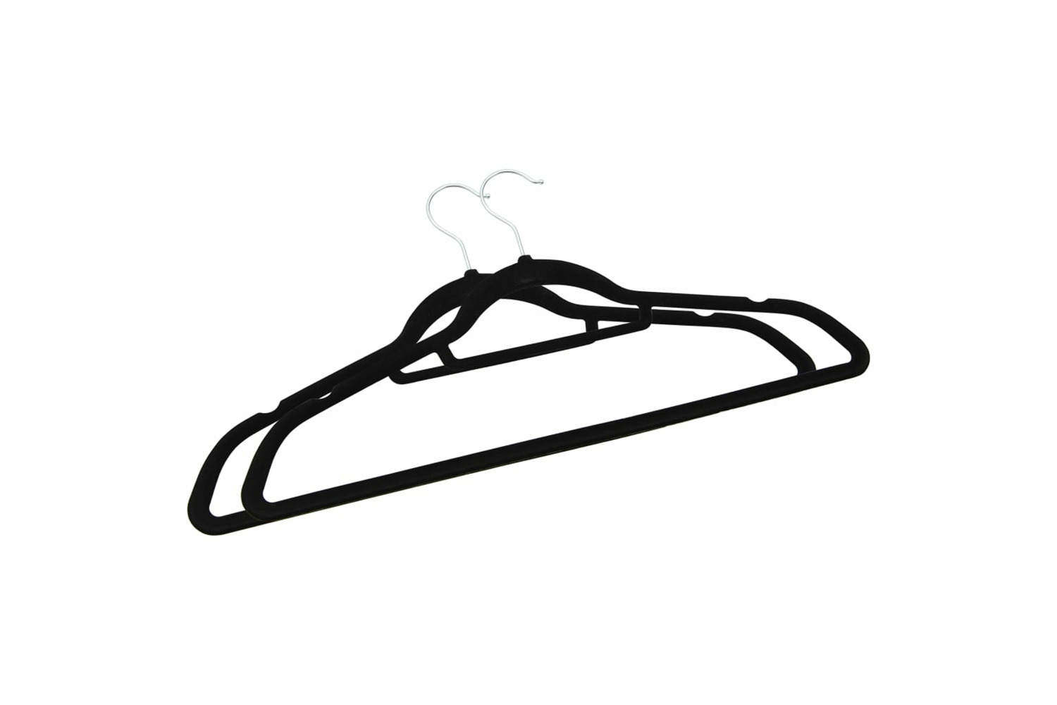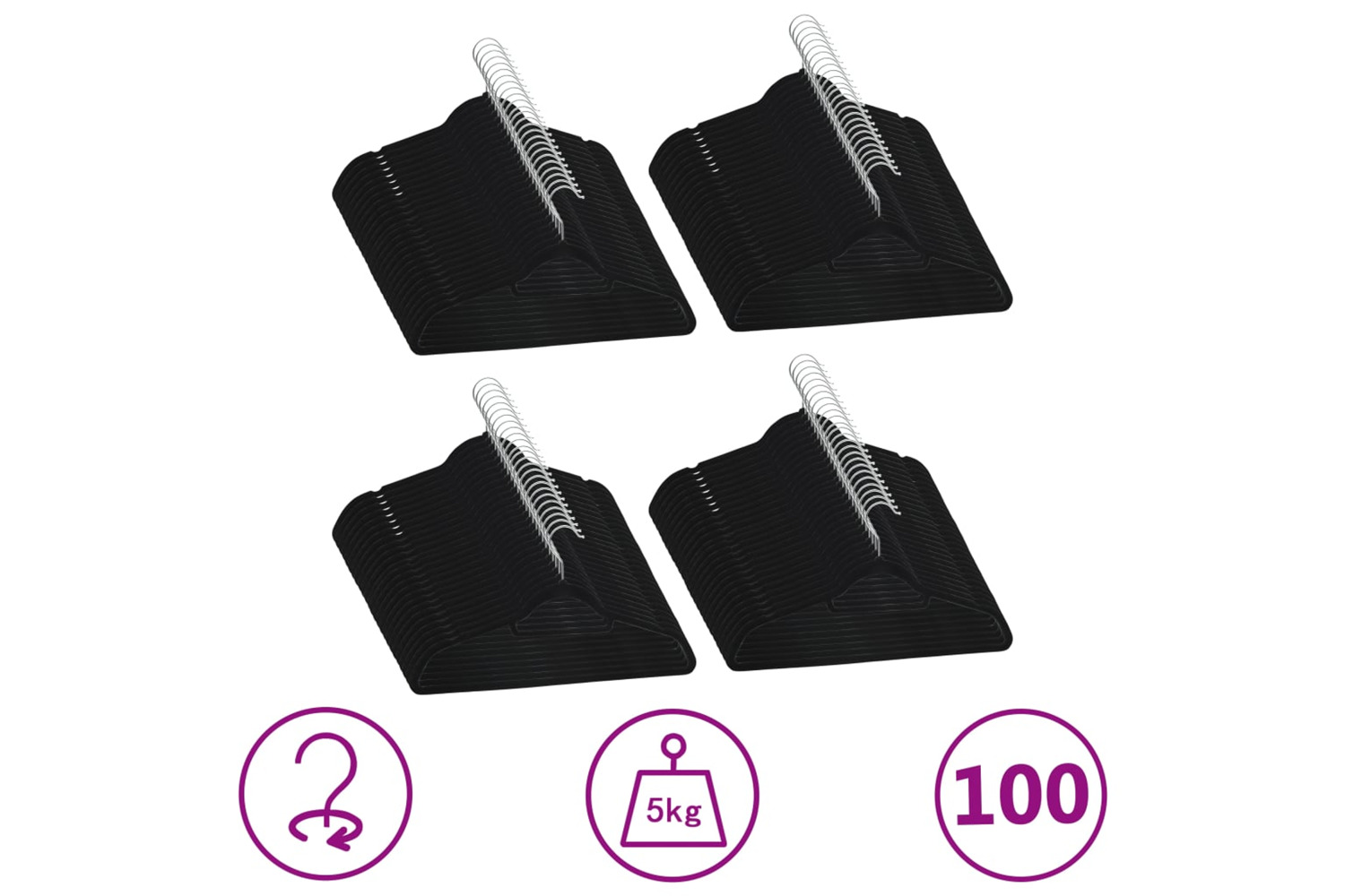 This set of hangers is made of plastic and metal, keeping it durable and sturdy enough to withstand the weight of heavy. The velvet-coating surface is smooth and helps protect your clothing to scratch. 360 degrees rotatable hook provides flexibility to organise your clothing in various places. Also, 2 grooves on two sides prevent the clothes or clothing accessories to slide off.