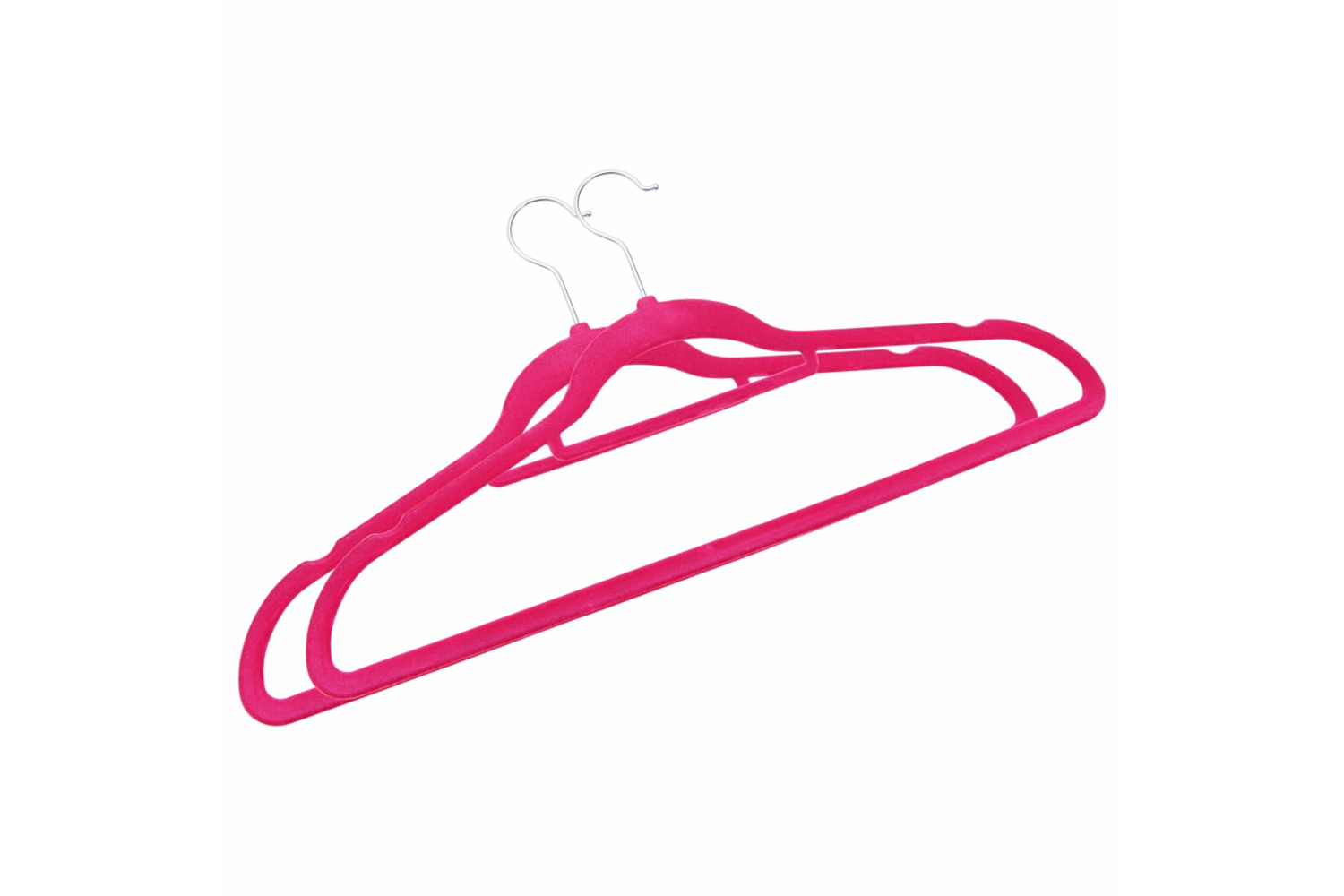 This set of hangers is made of plastic and metal, keeping it durable and sturdy enough to withstand the weight of heavy. The velvet-coating surface is smooth and helps protect your clothing to scratch. 360 degrees rotatable hook provides flexibility to organise your clothing in various places. Also, 2 grooves on two sides prevent the clothes or clothing accessories to slide off.