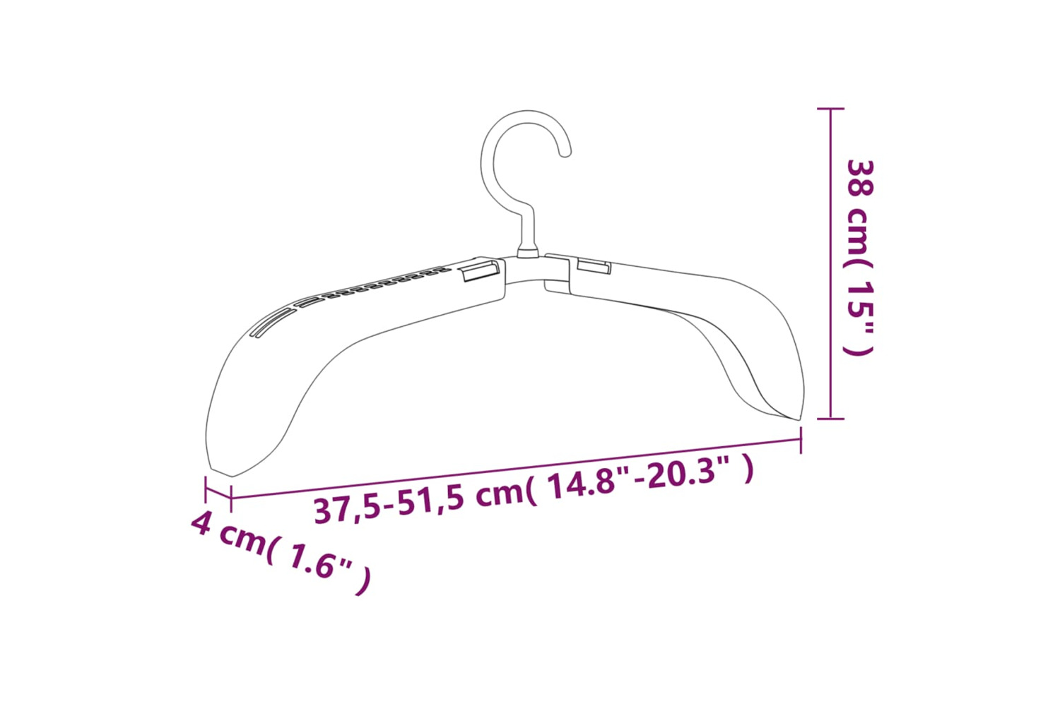 - Extendable length: This clothing hanger can be pulled out from 37,5 to 51,5 cm in length, making it possible to hang various size of clothes.