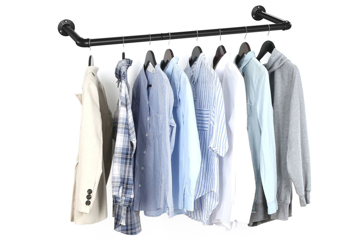 When closet space is in short supply—but your clothes collection isn’t—wall storage can fill the gap. Create your own wall hanging storage with this set of 2 clothes rails that makes everything easier to grab, letting you make a style statement with an industrial vibe