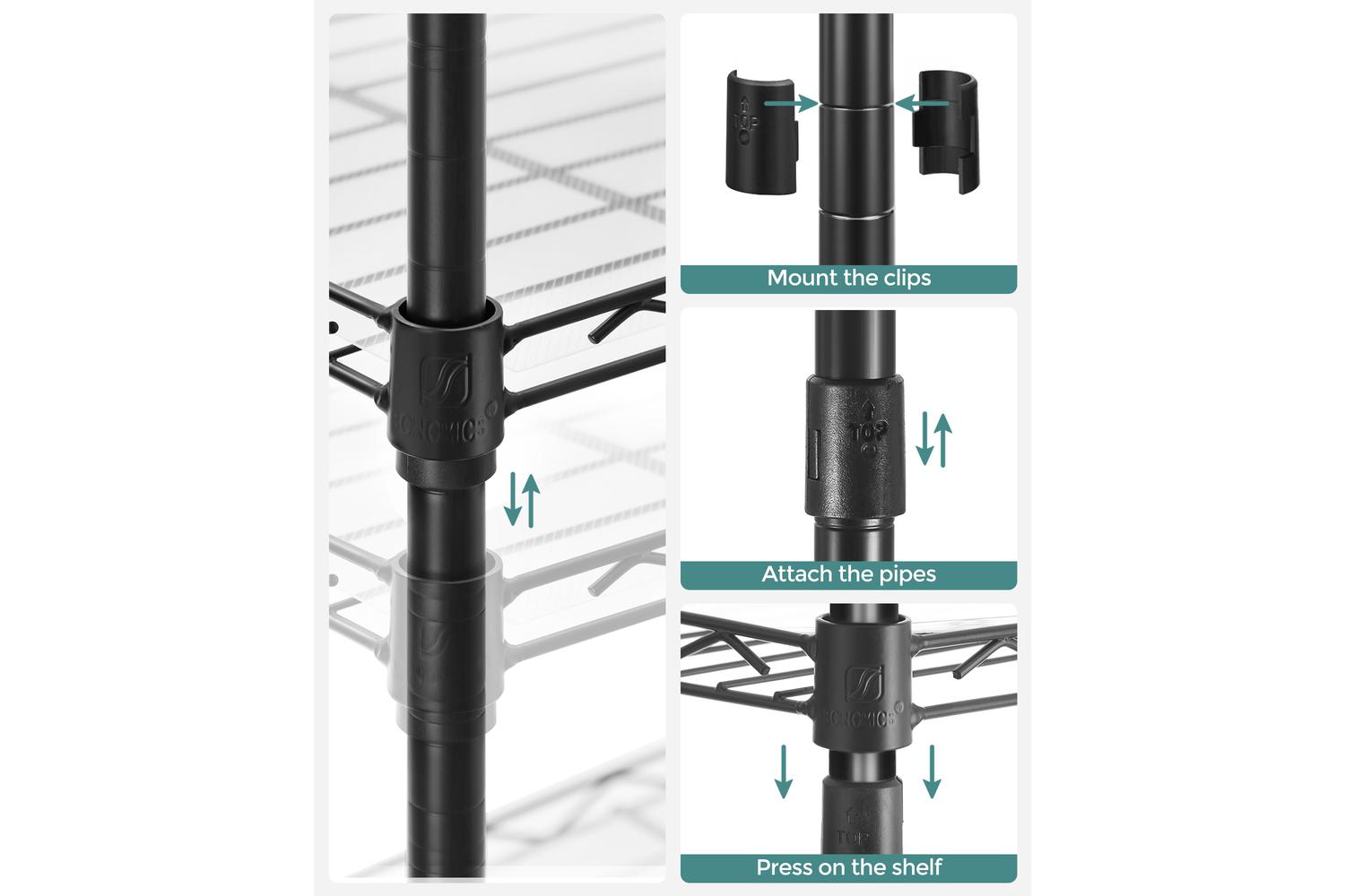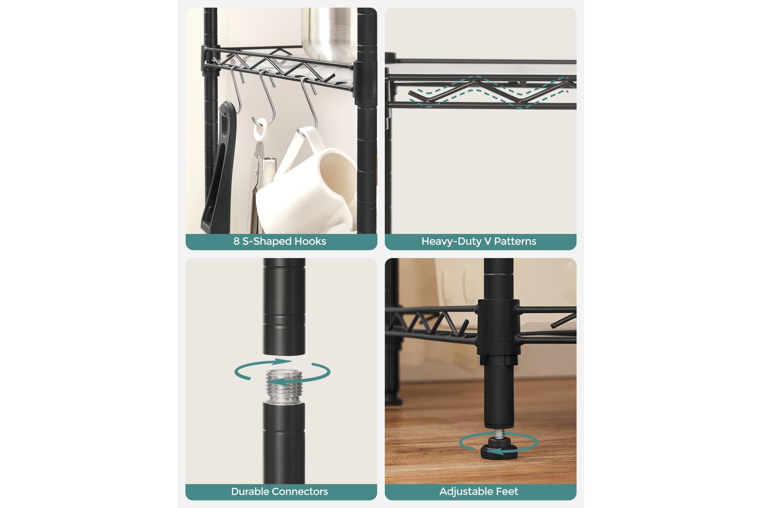 Make the most of every inch with the eight removable S-hooks, perfect for hanging utensils, towels, cups, or even clocks. Customise your storage to fit your lifestyle, whether you are organising a busy family kitchen or creating extra space in your wardrobe. The SONGMICS Storage Shelves are designed to adapt, making them a smart choice for Irish households seeking practical, stylish storage solutions.