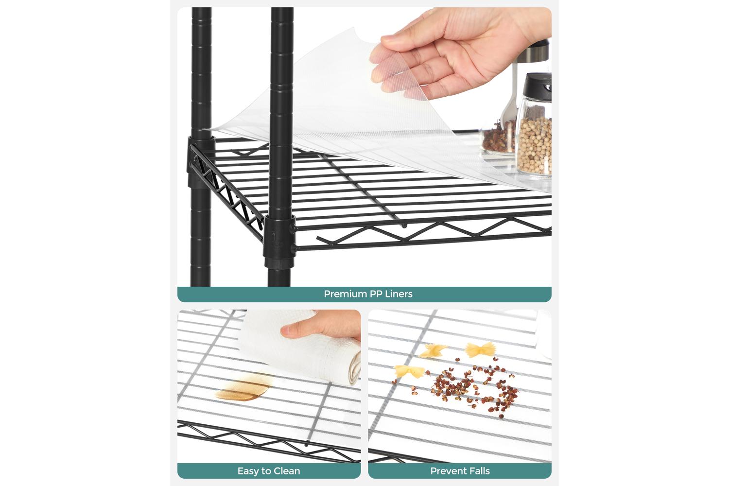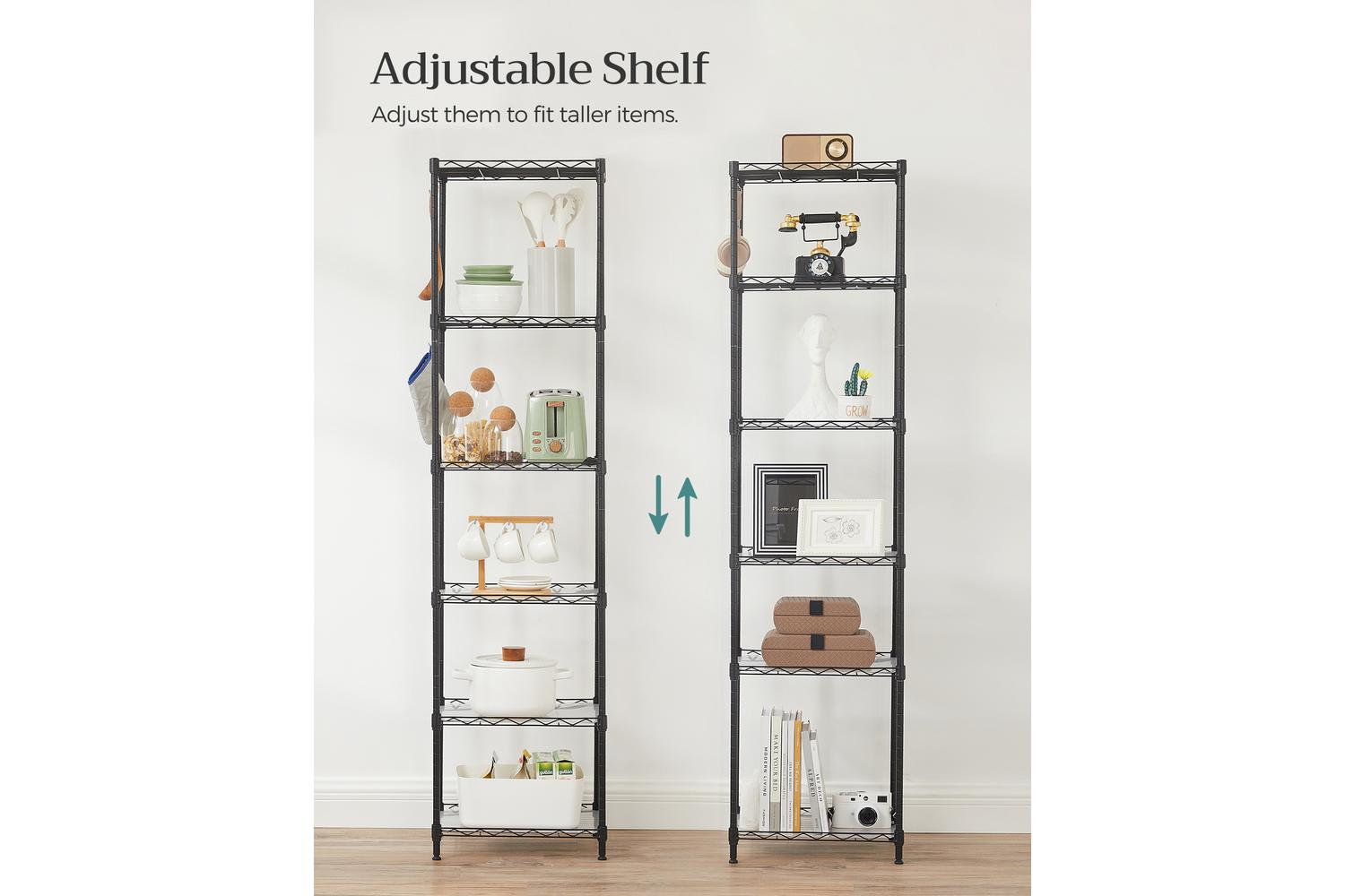 Forget about fiddly screws and confusing instructions. The SONGMICS Storage Shelves feature a tool-free assembly process, so you can set up your new organiser in minutes. The clear, step-by-step guide ensures a stress-free experience, letting you focus on what matters most—getting your home in order. Each shelf is height-adjustable, giving you the freedom to customise the layout for everything from tall bottles to small kitchen gadgets. No more struggling to fit awkward items; simply move the shelves up or down to suit your storage needs.