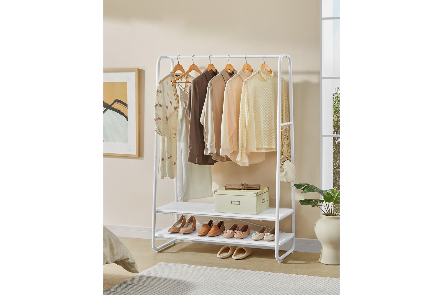 Unbox today the VASAGLE RGR112W02 Garment Rack, and experience innovative solutions while putting an elegant edge to your living room scenery. Order now, and pave the way to comfortable, spacious, and organised living.