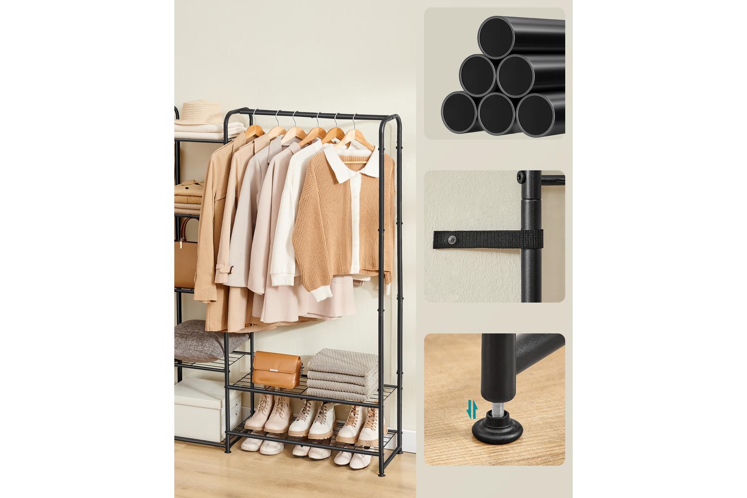 Whether you are storing winter coats, summer dresses, or everyday essentials, the SONGMICS Wardrobe is built to handle it all. Each clothes rail supports up to 28 kg, while the bottom and side shelves are perfect for shoes, bags, or folded items. The overall load capacity of 121 kg ensures you can store your entire wardrobe with confidence.