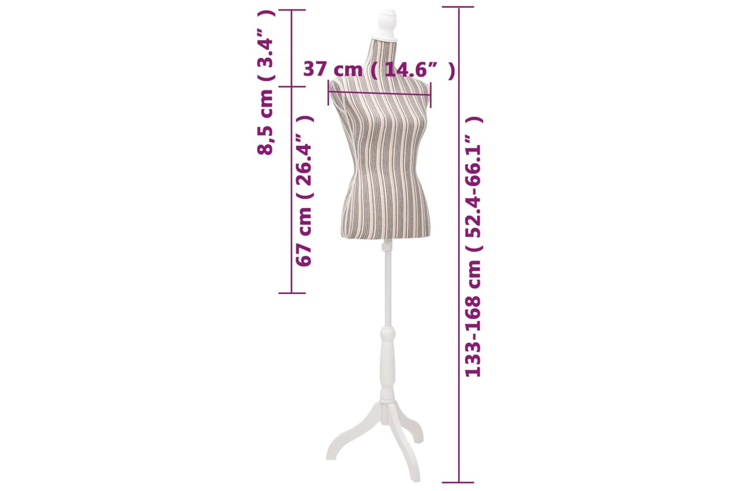 This female mannequin can be adjusted in height from 133 cm to 168 cm. This range of setting options enable the display to be adapted to suit your specific need.This display bust comes complete with the torso, the tripod stand, the thistle top, and the pole as well.