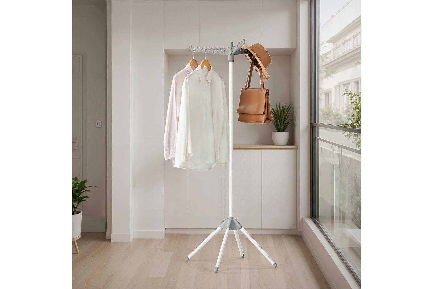 Featuring three 360° rotatable arms, this drying rack allows you to hang up to 27 pieces of clothing at once, making it perfect for families or anyone with a busy laundry routine. The arms are designed with dedicated holes for hangers, ensuring your clothes dry evenly and remain wrinkle-free. With a maximum static load capacity of 15 kg, you can confidently dry heavier items like jeans, jumpers, or even bedding.
