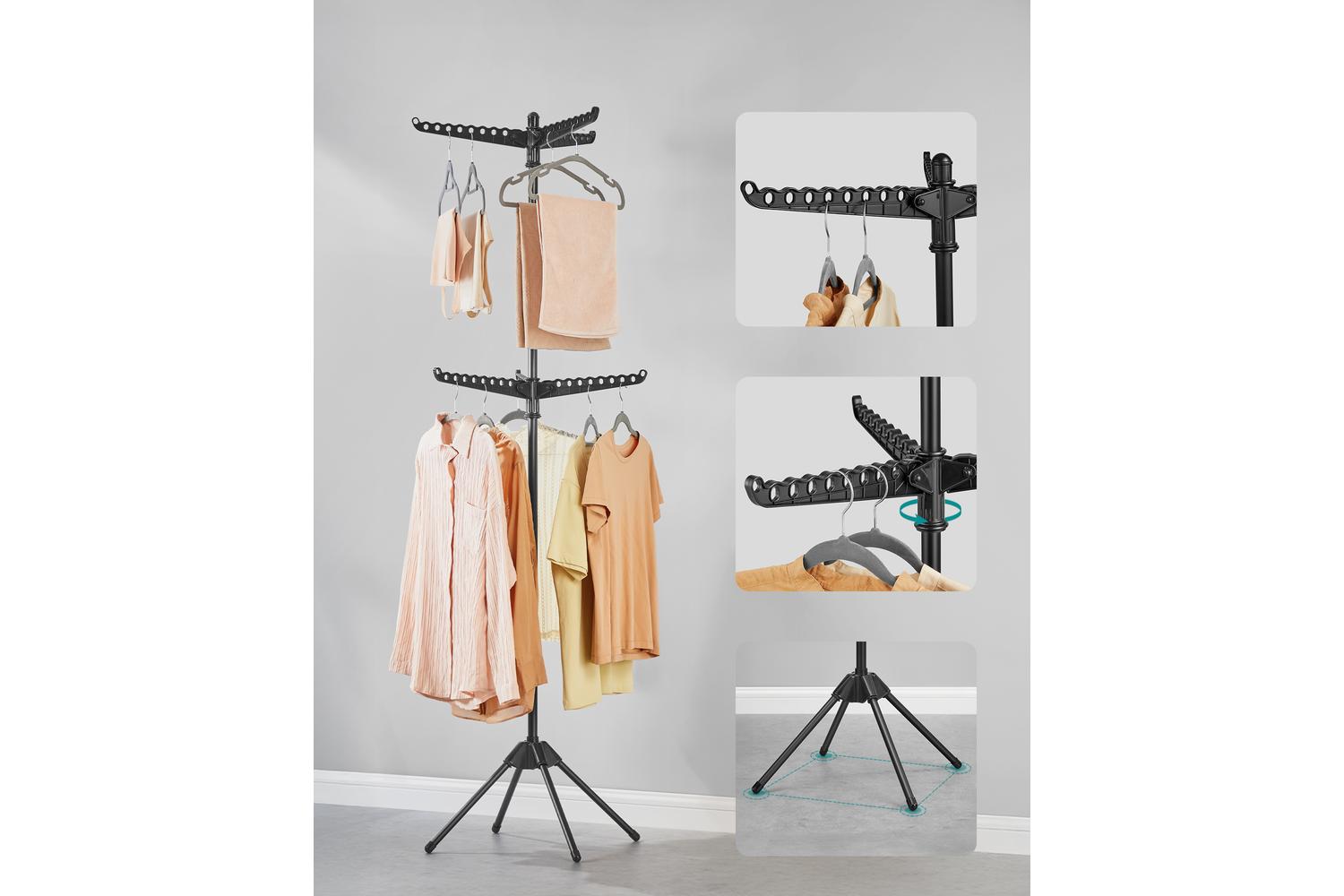 Enjoy the convenience of 360° rotating arms, allowing you to access every item with ease. The two-tiered design, featuring 6 arms and 54 hanging holes, ensures you have plenty of space for both long and short garments. The robust stainless steel construction, paired with a stable four-legged base, guarantees durability and rust resistance, even in Ireland's damp climate. Compared to traditional three-legged models, this four-legged rack offers enhanced stability, so you can hang heavier items with confidence.