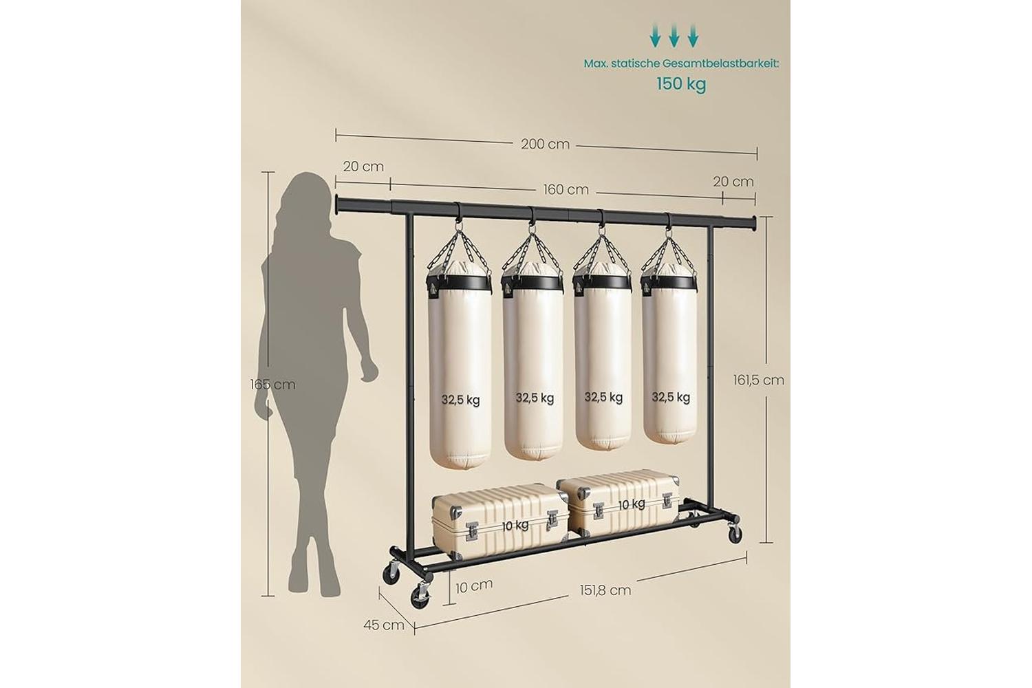- Adjustable width: 160-200 cm for flexible storage