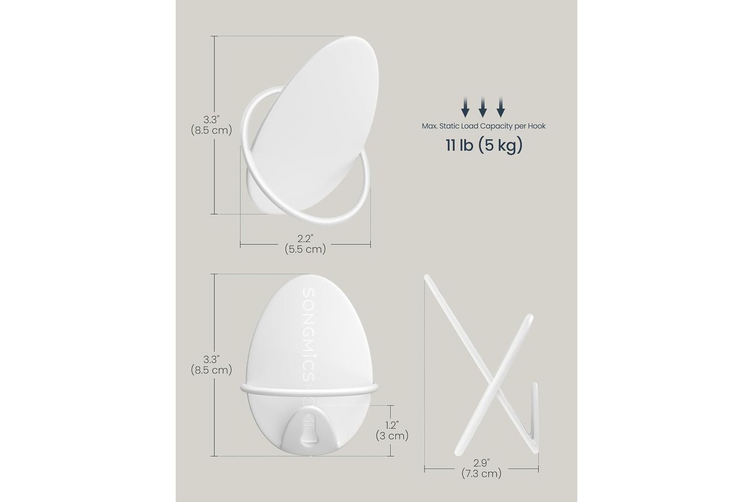 - Max. Static Load Capacity per Hook: 5 kg (11 lb)