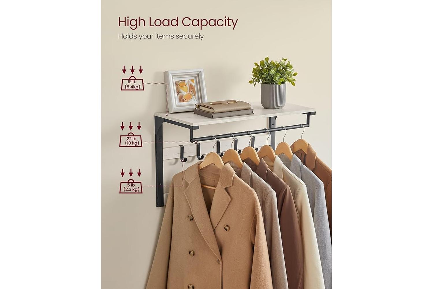 Installation is straightforward, making it a perfect DIY project for anyone looking to upgrade their storage without hassle. The VASAGLE Coat Rack is lightweight yet strong, supporting up to 22 lb (10 kg) on the hanging rail and 18 lb (8.4 kg) on the shelf, with each hook holding up to 5 lb (2.3 kg). This makes it ideal for busy Irish households, where durability and functionality are essential. Enjoy a clutter-free home and make a great first impression with this stylish and practical storage solution.