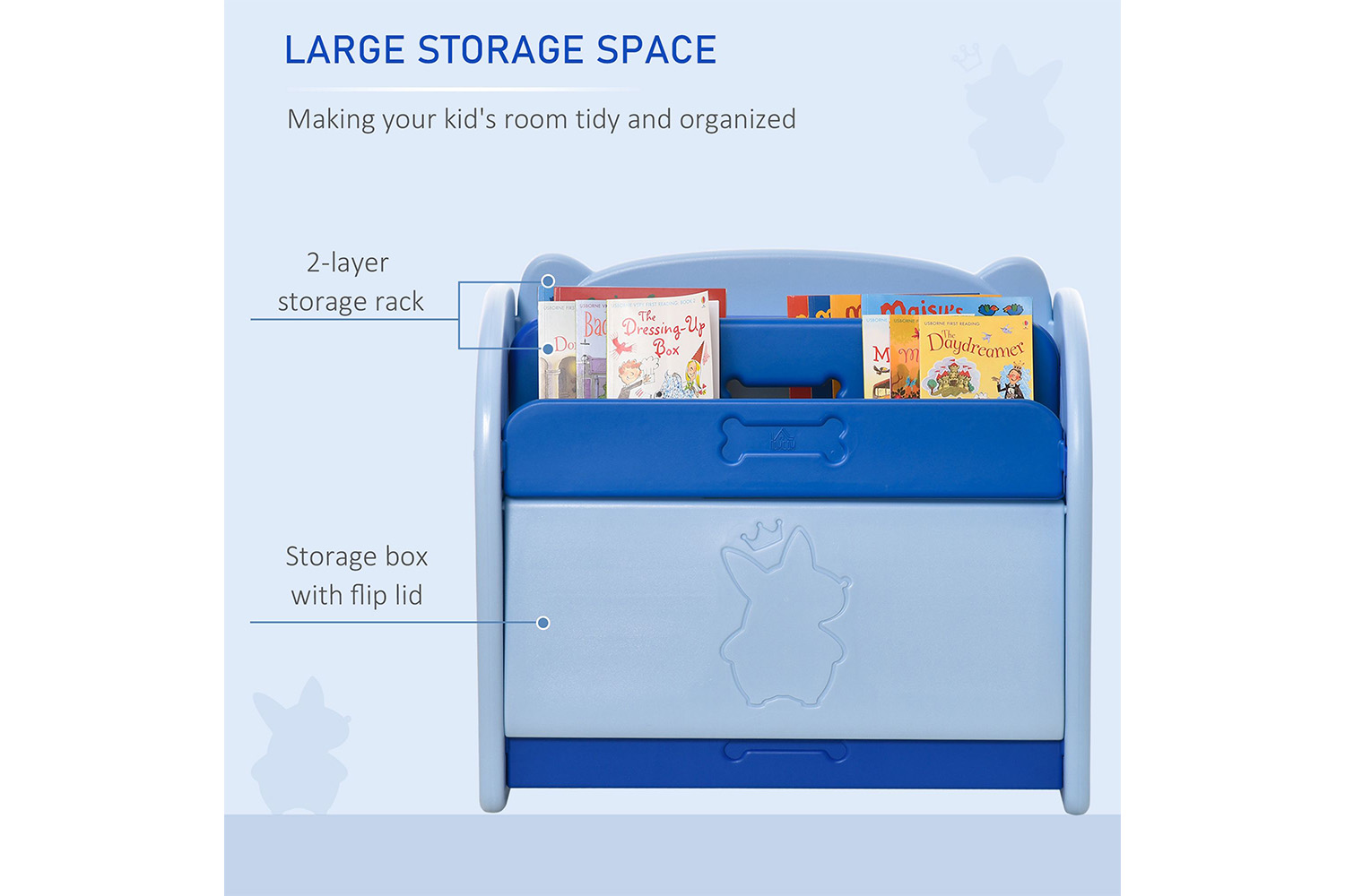 • Open-Access design and the suitable height, your kids can easily reach the contents of the storage bin