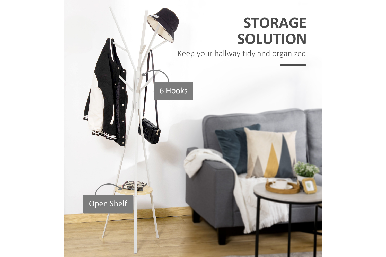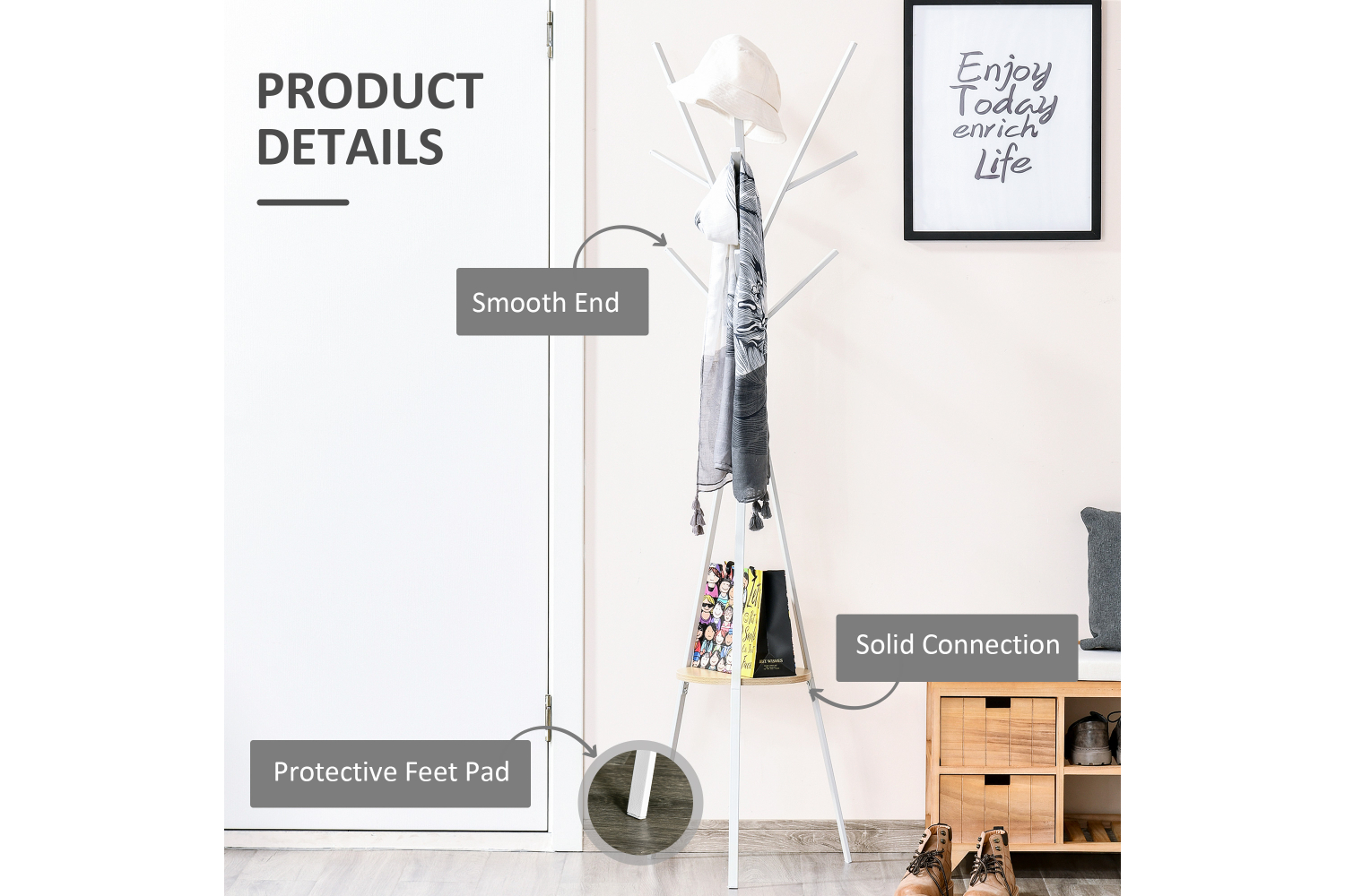 Homcom Free Standing Coat Rack with Shelf Holder Stand | White