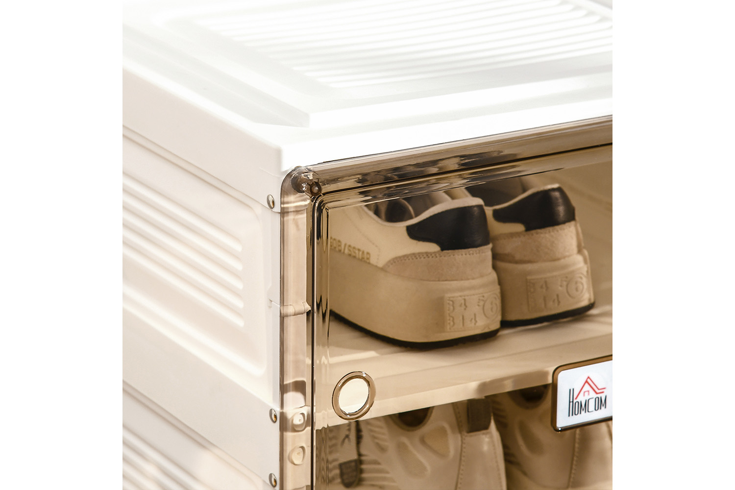 Homcom Portable Plastic Shoe Storage Cabinet with Ten Compartments | White/Brown