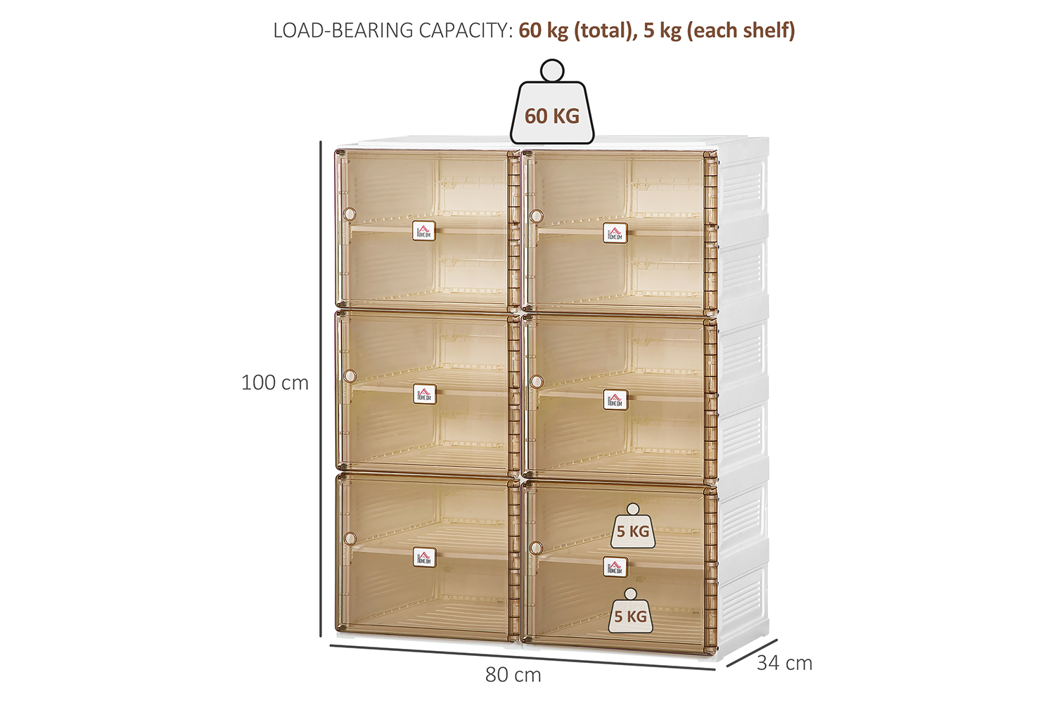 • Weight capacity: 60kg (total), 5kg (each shelf)