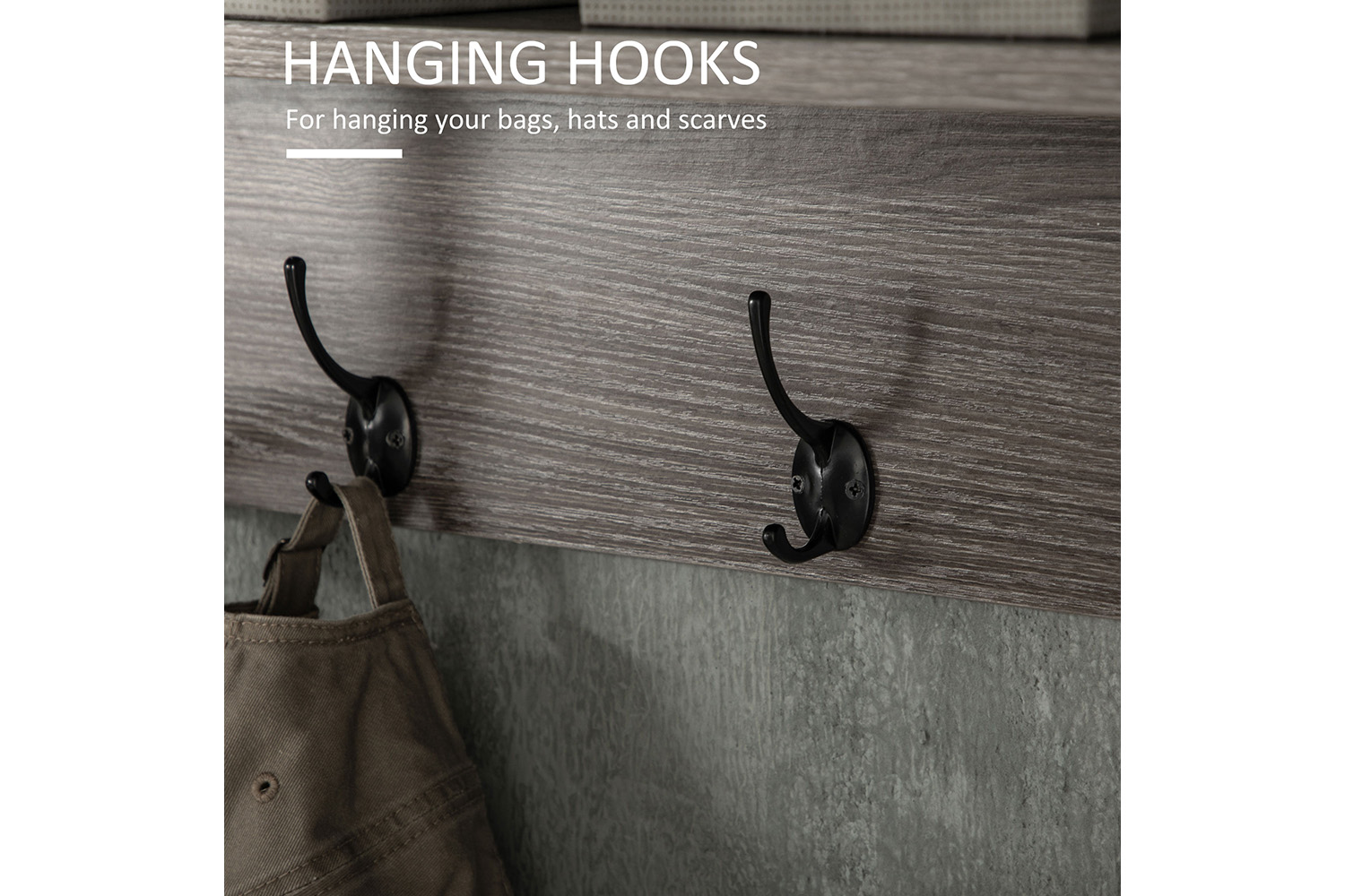 Easy, convenient storage for the hallway, the kitchen and beyond: say hello to this hanging rack from Homcom. A metal frame which is strong, it's easy to fix to the wall/surface you choose. Comes with four hooks to hang outerwear, garments, towels etc,, with a top shelf for extra holding room. Natural wood effect with a rustic edge, this piece will look great, no matter where you decide to fix it.