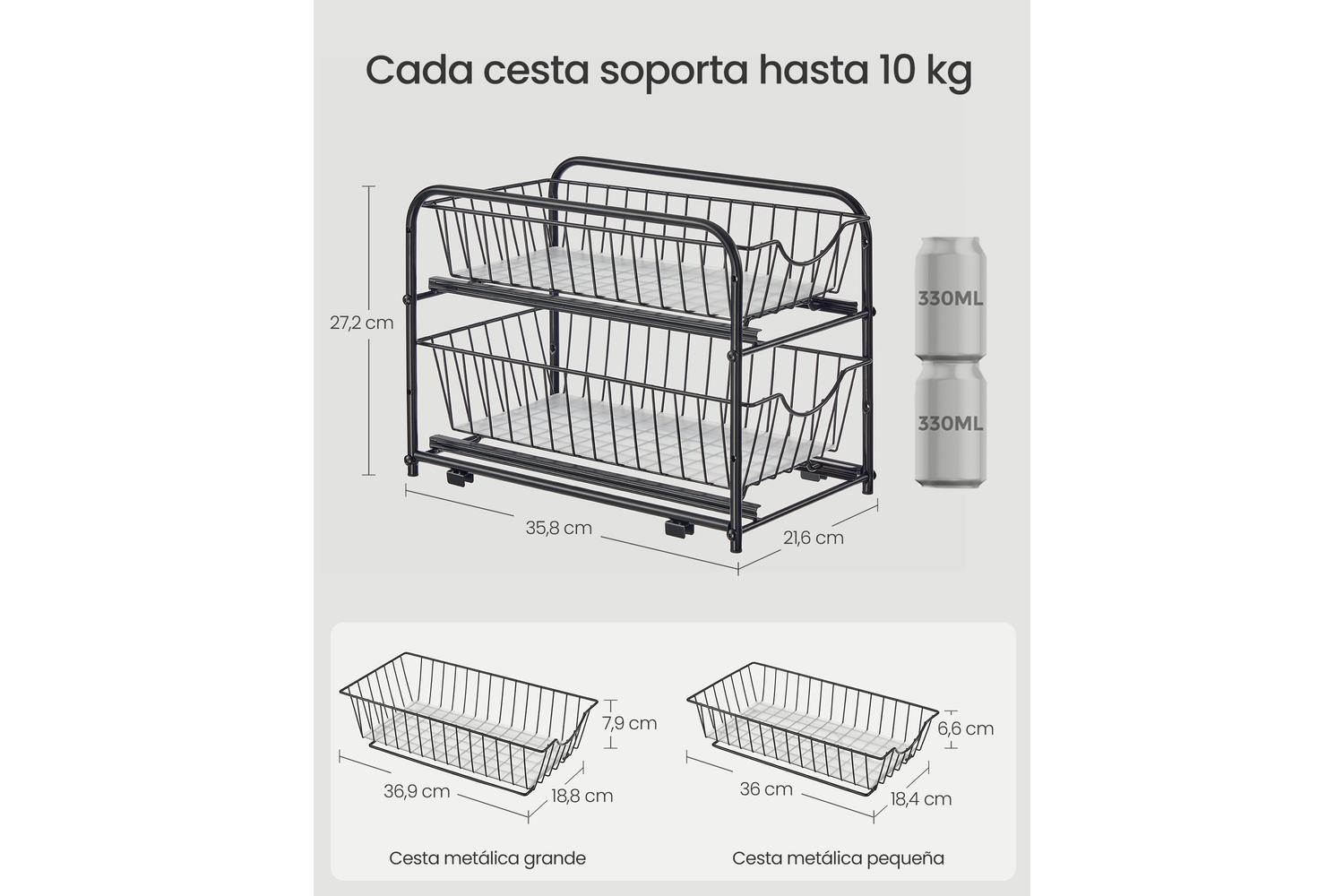 - Dimensions (with 2 baskets): 21 x 36.5 x 27.2 cm (D x W x H)