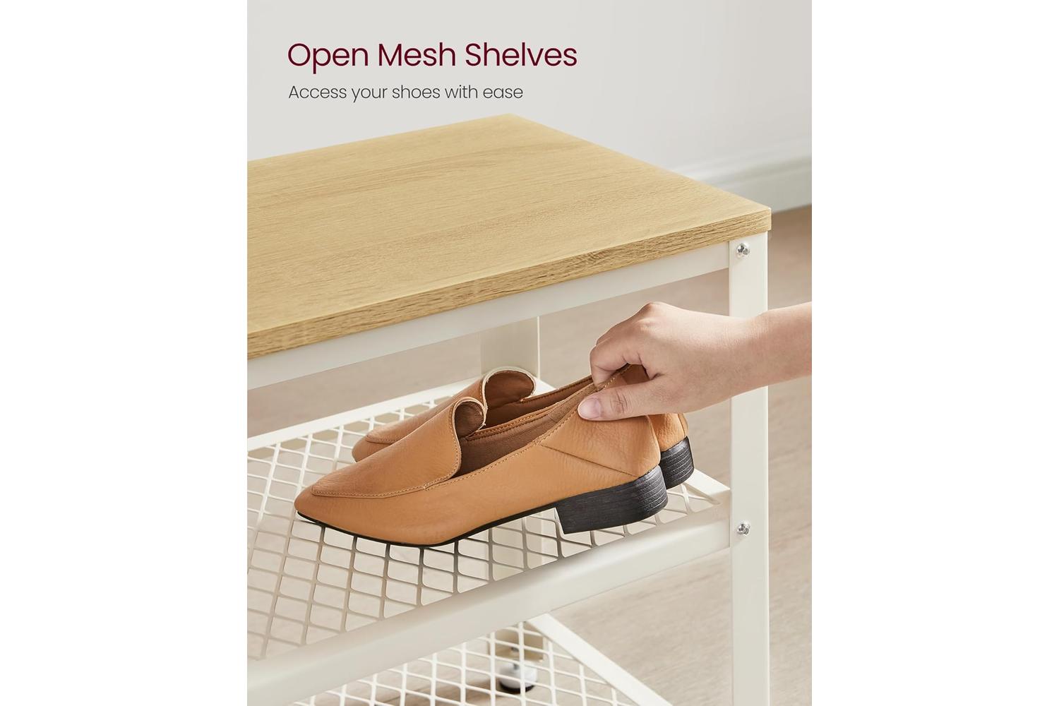 Enjoy the convenience of two mesh shelves, each capable of holding up to 5 kg, providing ample space for your favourite shoes, boots, or even storage baskets. The sturdy seat supports up to 90 kg, offering a reliable place to sit while you get ready for the day. Assembly is straightforward, thanks to the included accessory kit and clear instructions, so you can have your new storage solution set up in no time.