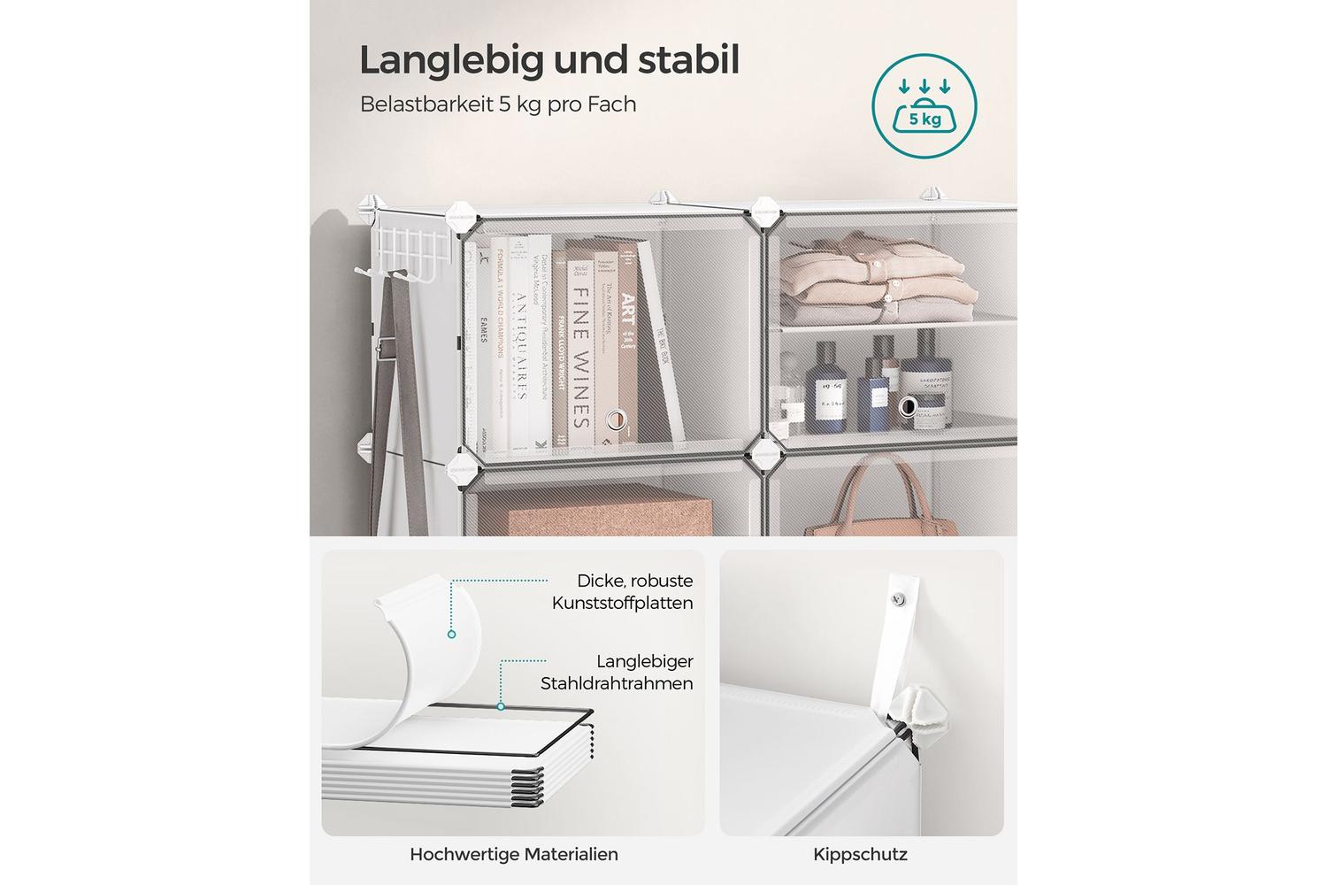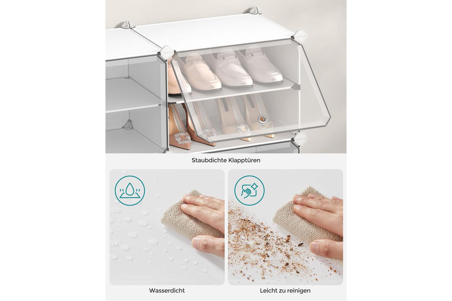 Crafted from high-quality ABS plastic connectors, durable PP plastic panels, and a sturdy steel frame, this shoe rack is built to last. The modular design allows you to assemble it in various configurations, so you can tailor it to fit your space and storage needs. With generous dimensions of 12.6 inches deep, 48.8 inches wide, and 37 inches high, it offers ample room for shoes, boots, bags, and more. Each compartment measures 11.8 inches deep by 15.7 inches wide, providing plenty of space for even the bulkiest footwear.