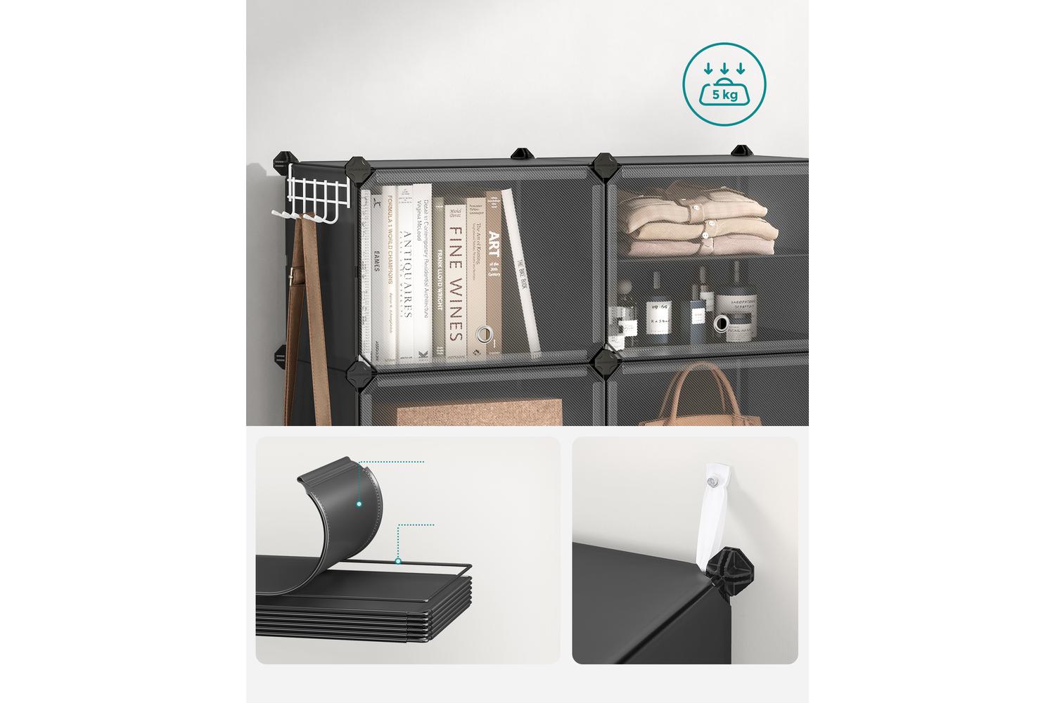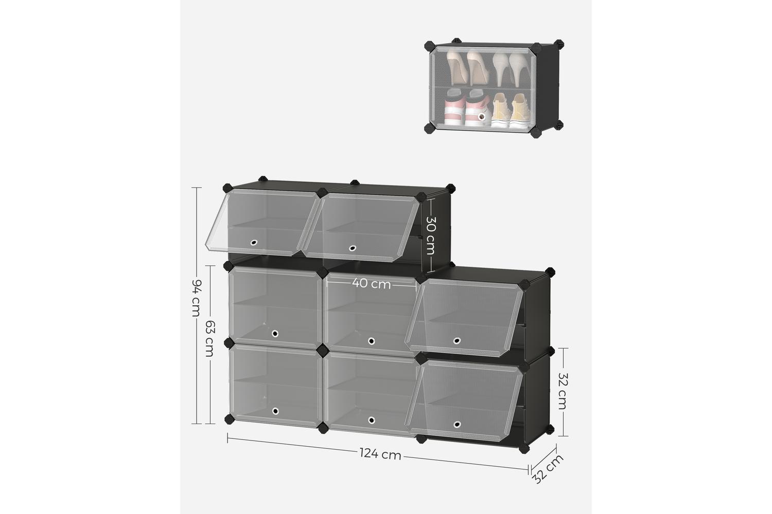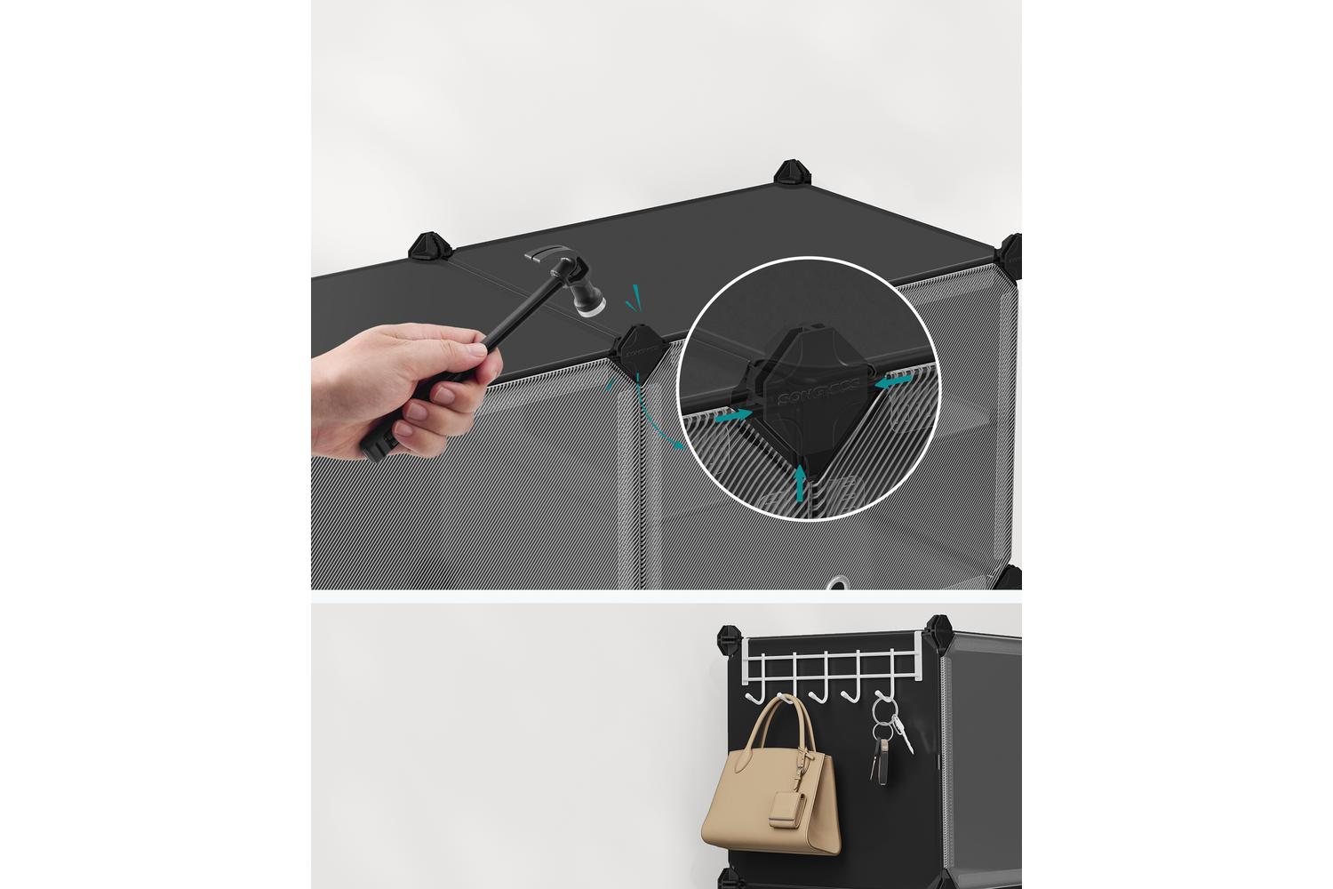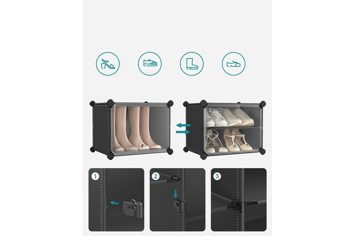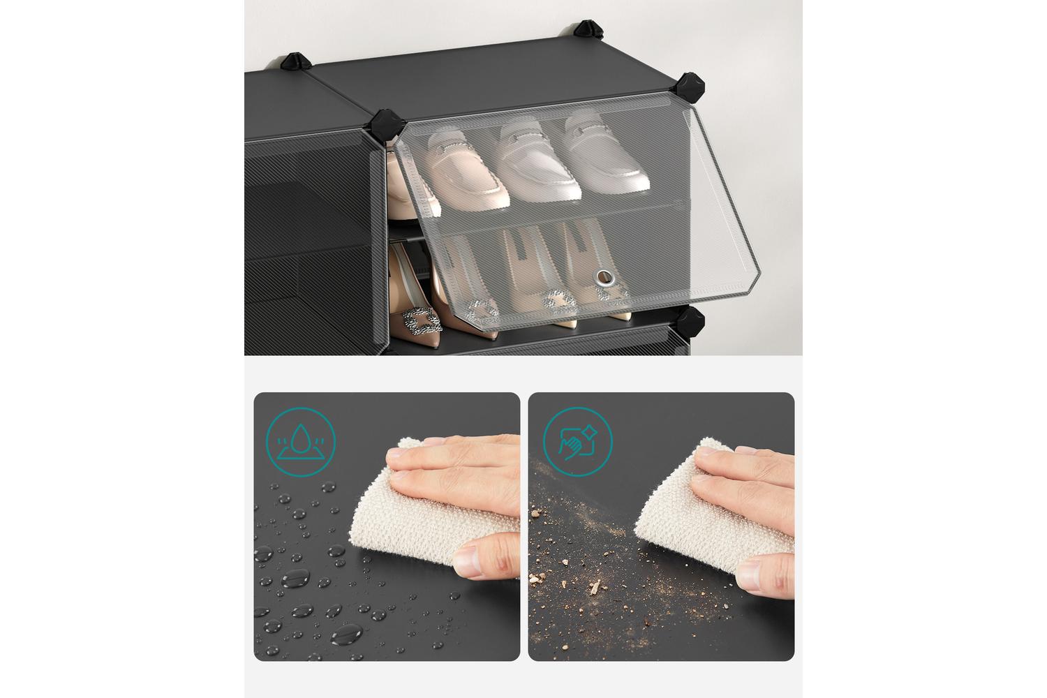 Boasting the ability to hold up to 32 pairs of shoes, this modular shoe storage unit is ideal for families, shoe enthusiasts, or anyone who values a tidy living space. The clever side hooks are perfect for hanging bags, dog leads, or accessories, helping you make the most of every inch of your home. The transparent doors keep your footwear dust-free and protected from water stains, while the metal grommet handles ensure easy access and help prevent unwanted odours.