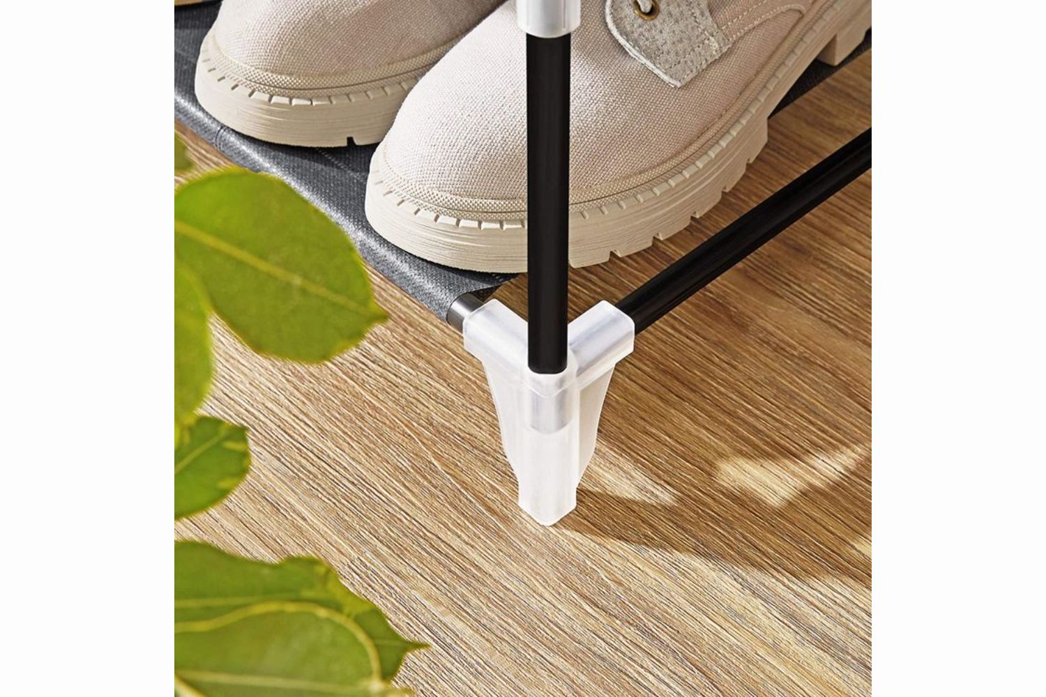 When you get home, you won't see a toppled shelf. Robust metal tubes, plastic connectors, and a practical anti-tip kit are terrific union that gives this shoe rack good stability and a load capacity up to 6.6 lb per shelf