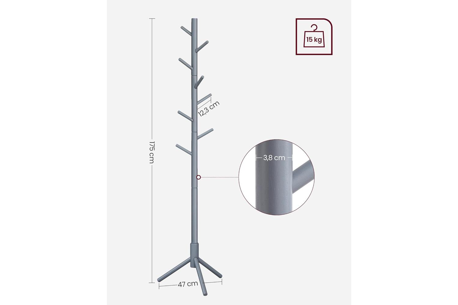 Experience an upgrade in home organization with the VASAGLE RCR04GY Coat Rack. Crafted with precision from 1.5-inch thick solid wood, this coat rack not only has a fashionable grey shade that adds a refreshing touch to your home but promises durability and a long service life. Fill your house with the charm of this practical and versatile coat rack, a must-have for a tidy and decluttered space.