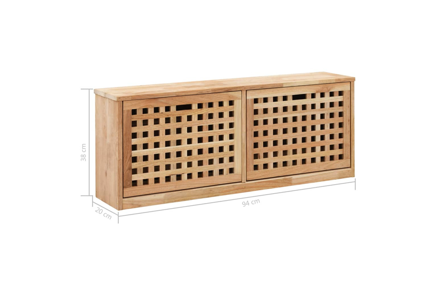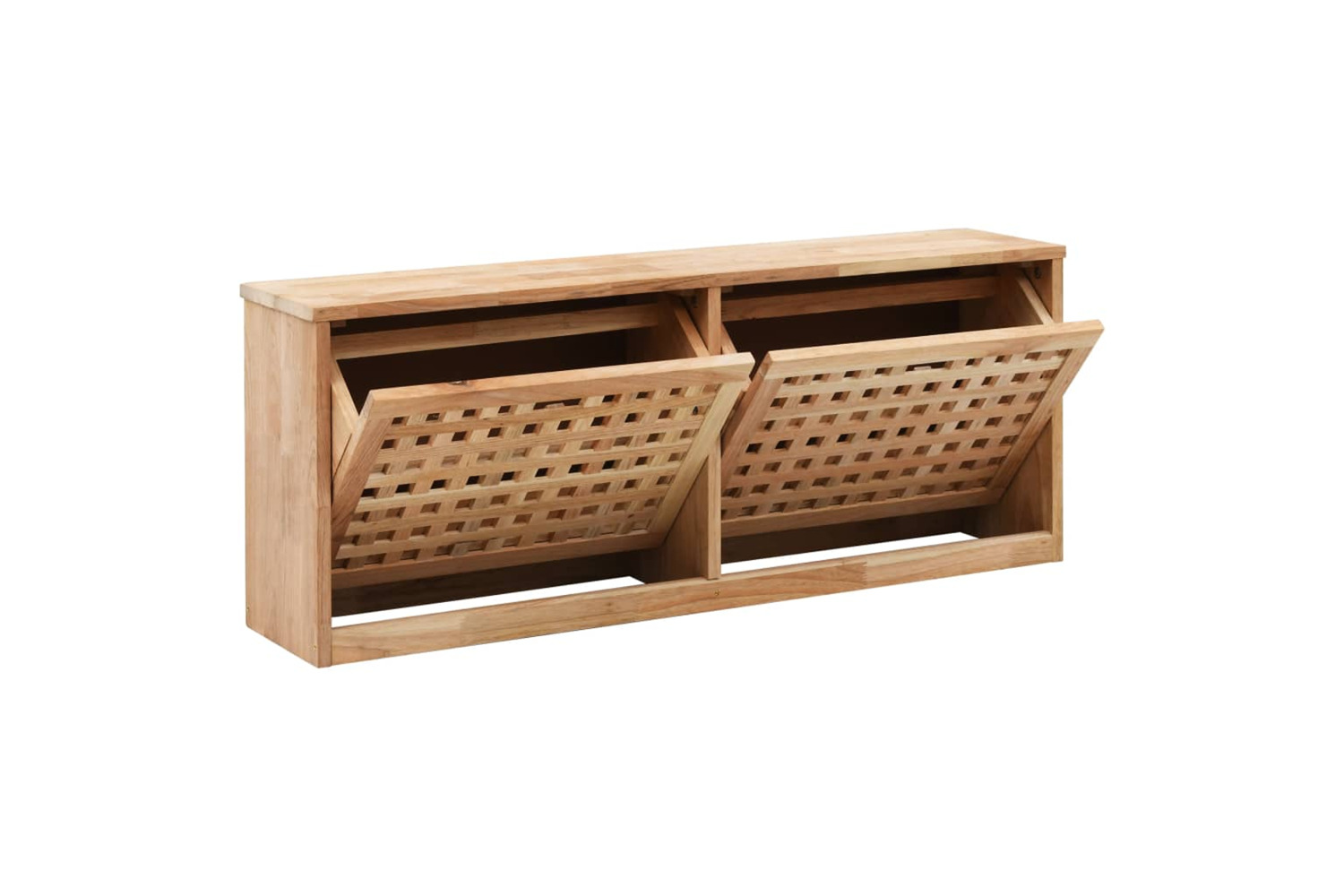The shoe cabinet provides ample space for storing six pairs of shoes. The hall cabinet allows you to sit comfortably on it while taking your shoes off or putting them on. Made of solid walnut wood and plywood, the shoe storage bench is very sturdy and durable. This strong hallway bench makes a highly practical place for neatly storing your shoes in style and clutter-free.