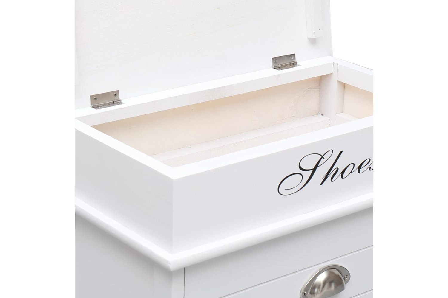 Made of paulownia wood, this hall cabinet is exceedingly durable and sturdy. The large tilting compartment has cross bars to keep things well-organised. Additionally, the cabinet top can be opened, and you can use the upper compartment to store shoe accessories such as shoelaces, shoe-pads, as well as various other small belongings. Our shoe organiser is easy to assemble.