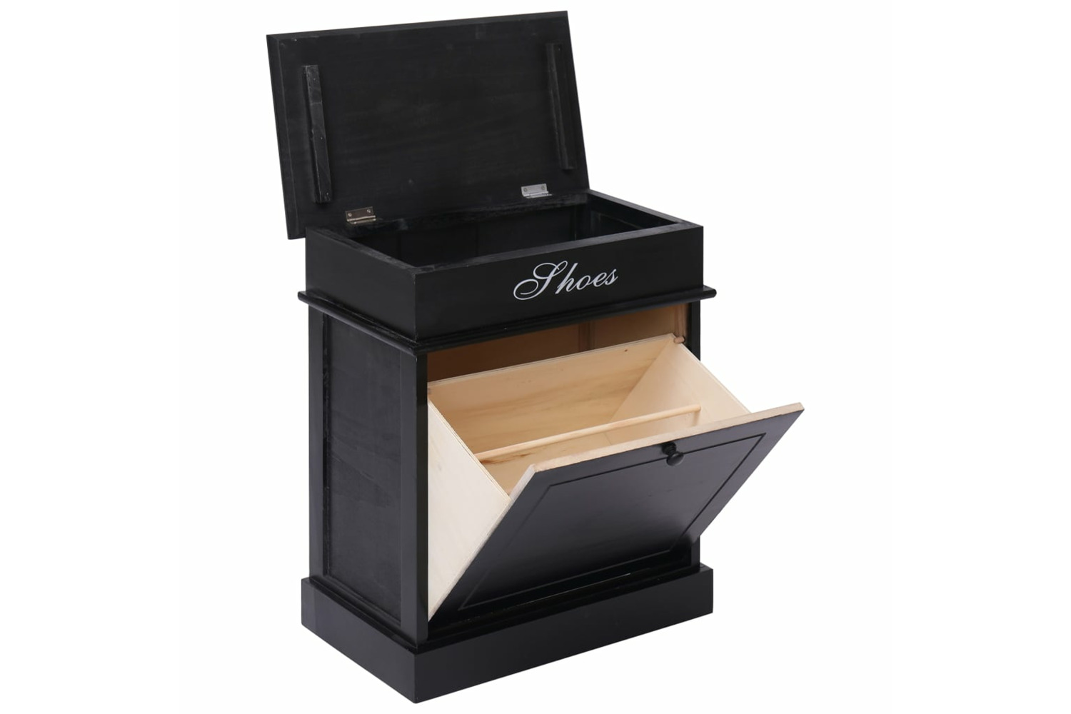Made of paulownia wood, this hall cabinet is exceedingly durable and sturdy. The large tilting compartment has cross bars to keep things well-organised. Additionally, the cabinet top can be opened, and you can use the upper compartment to store shoe accessories such as shoelaces, shoe-pads, as well as various other small belongings. Our shoe organiser is easy to assemble.