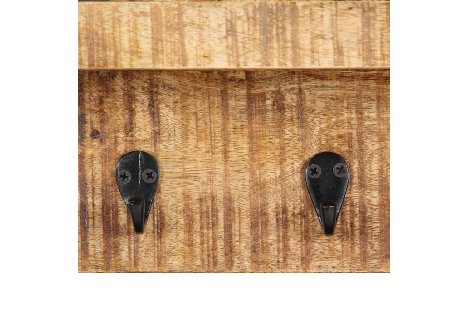 The wall hanger is made of solid rough mango wood, a kind of hardwood and tropical wood, making it sturdy and durable. The craftsmanship and the beautiful wood grains make every piece of furniture unique and slightly different from the next. Additionally, the cloth hanger is equipped with a shelf for holding books, phones, collectables, ornaments, etc., as well as 5 coat hooks for hanging bags, coats, umbrellas, pendants, keys, and more, to greatly save your room space.