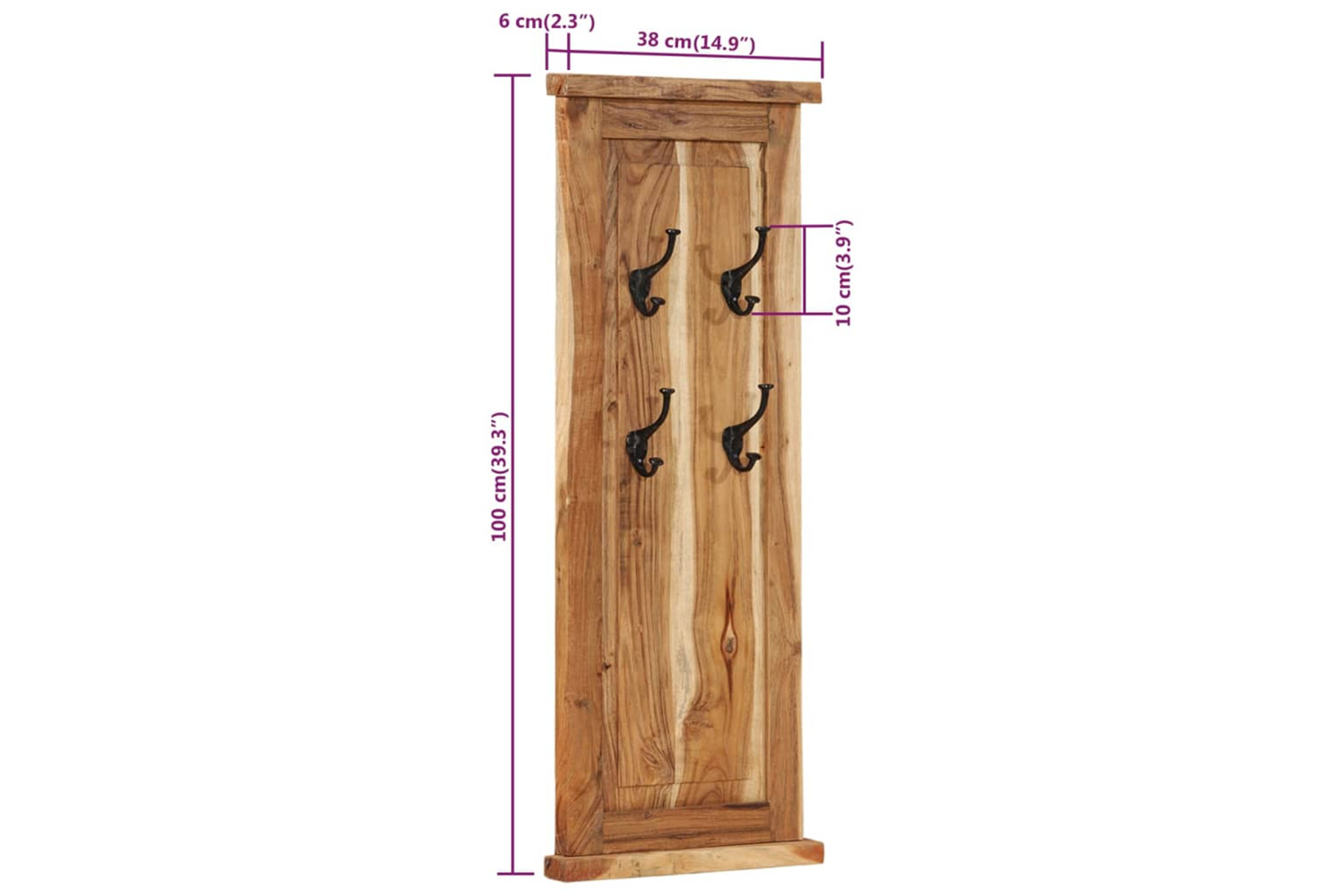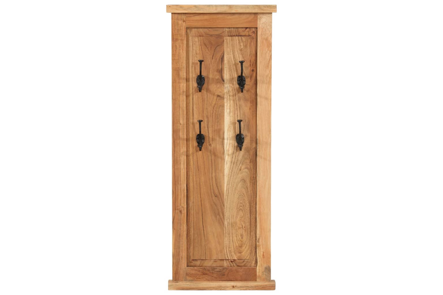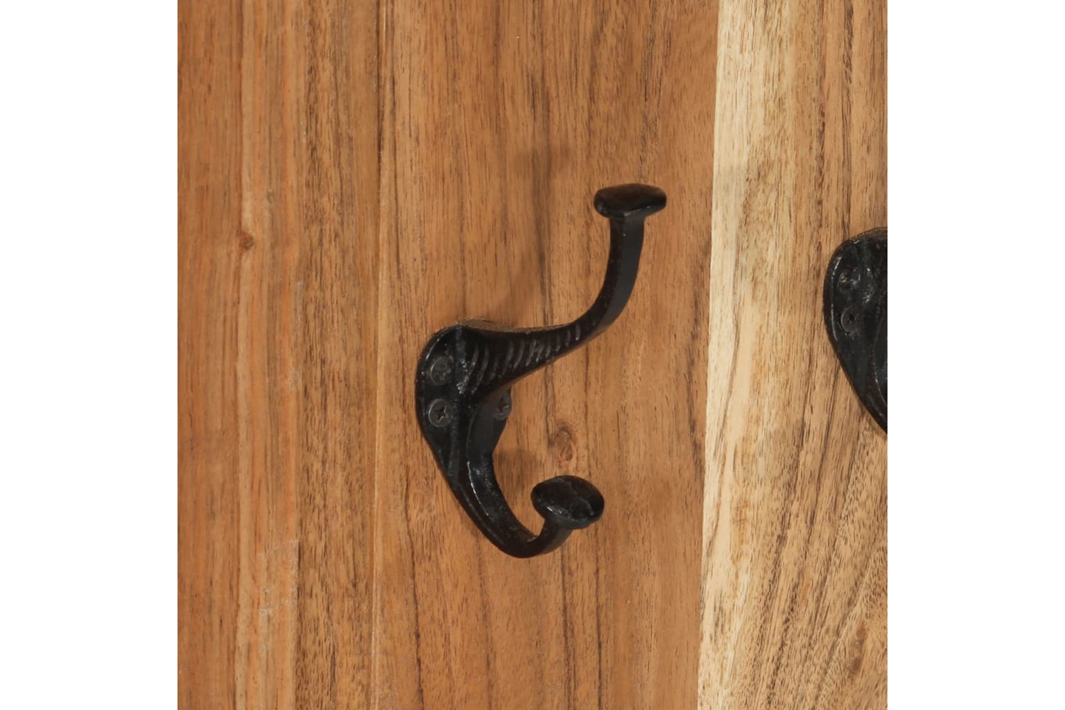Each coat rack has 4 wrought iron hooks that are very strong and durable. These retro and timeless wall-mounted racks present a perfect solution for keeping your coats, scarves or hats neatly organised. The coat racks are made of solid acacia wood and are highly sturdy and durable. Acacia wood is a tough hardwood with beautiful grains that will last for many years. Every step of the process is carried out with the greatest care, be it polishing, painting or lacquering. The craftsmanship and the wood grains make every piece of furniture unique and slightly different from the next.