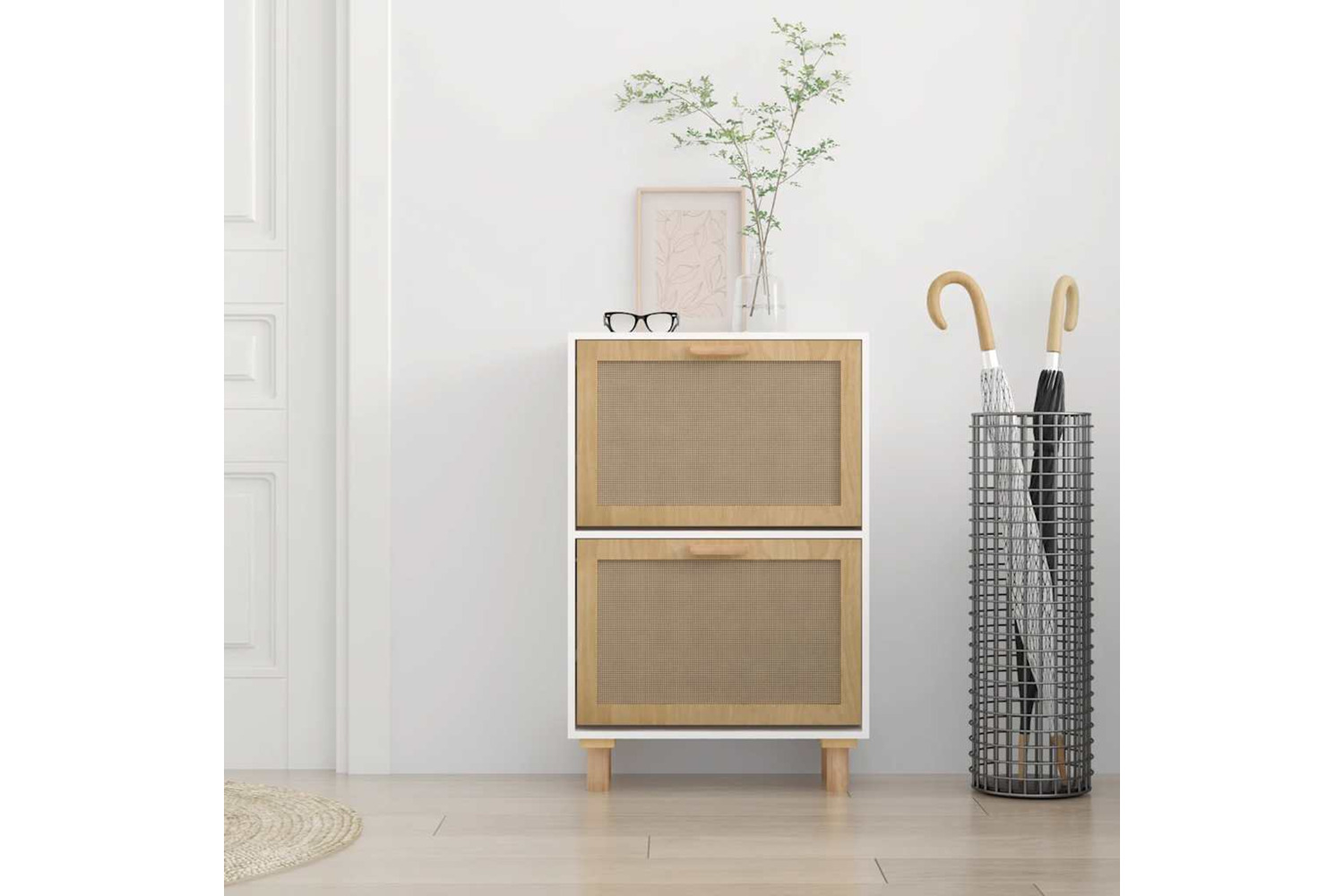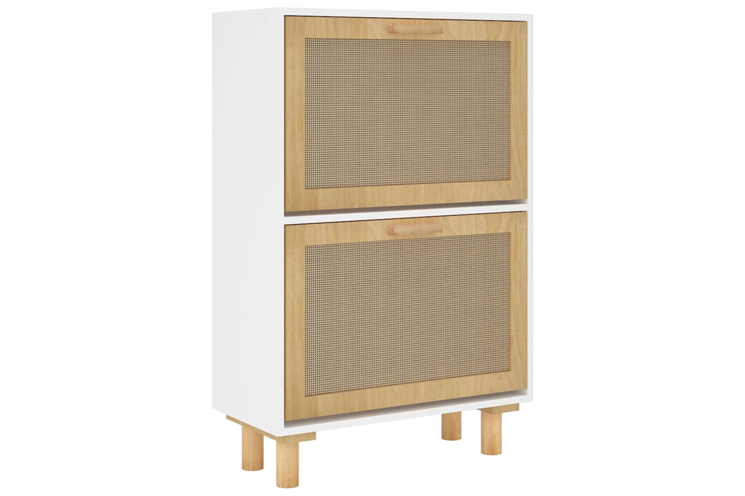 Vidaxl 345645 Shoe Cabinet White 52x25x80 Cm Engineered Wood&natural Rattan is rated