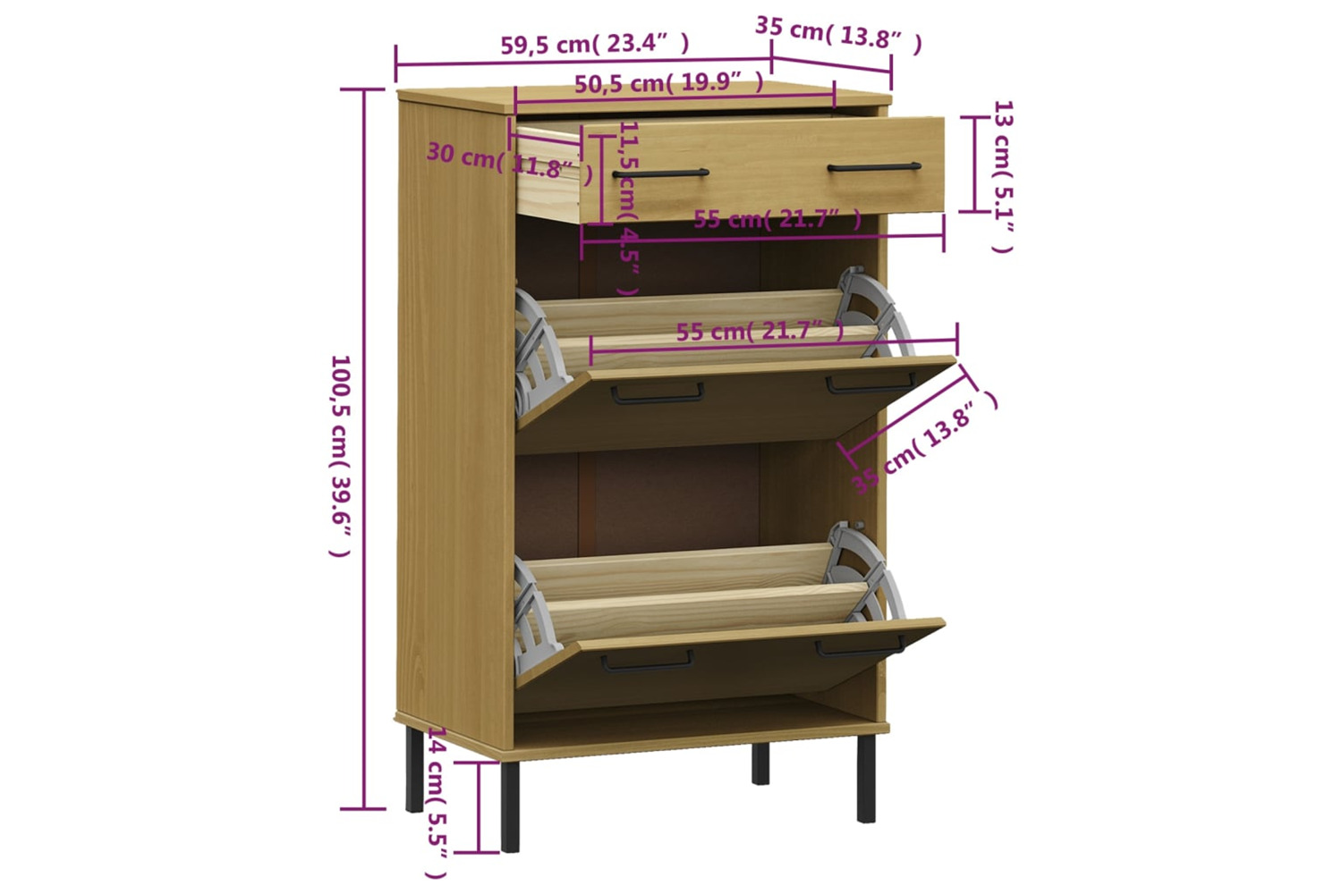 • Overall dimensions: 59.5 x 35 x 100.5 cm (W x D x H)