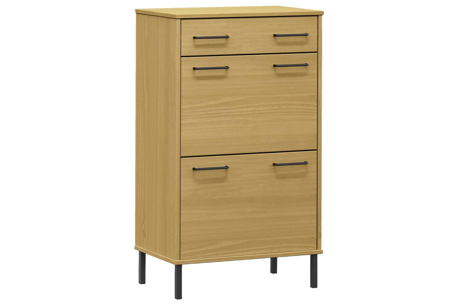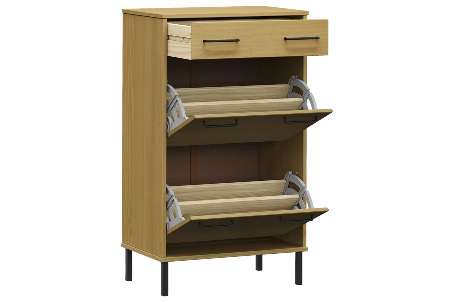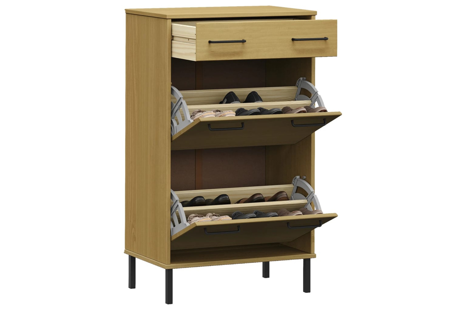 vidaXL 350982 Shoe Rack With Metal Legs Brown Solid Wood Pine Oslo